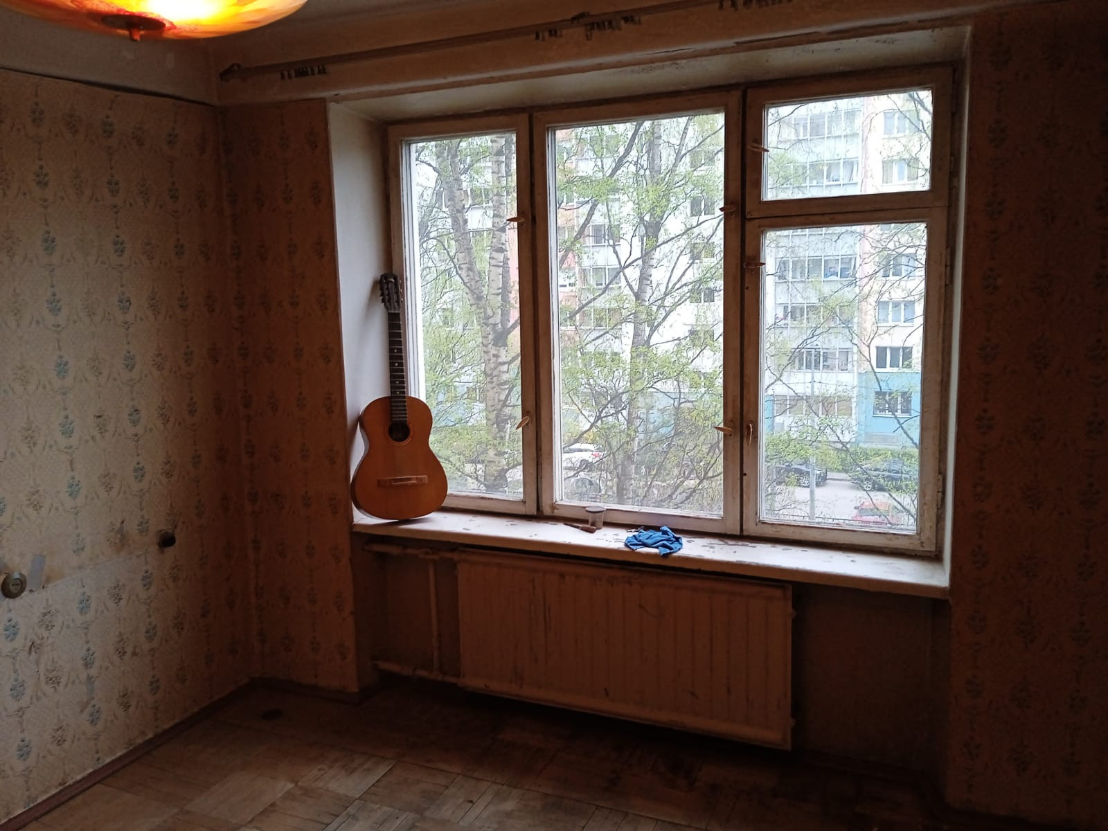 Окна выходят во двор(в комнате стоят большие окна, света очень много).