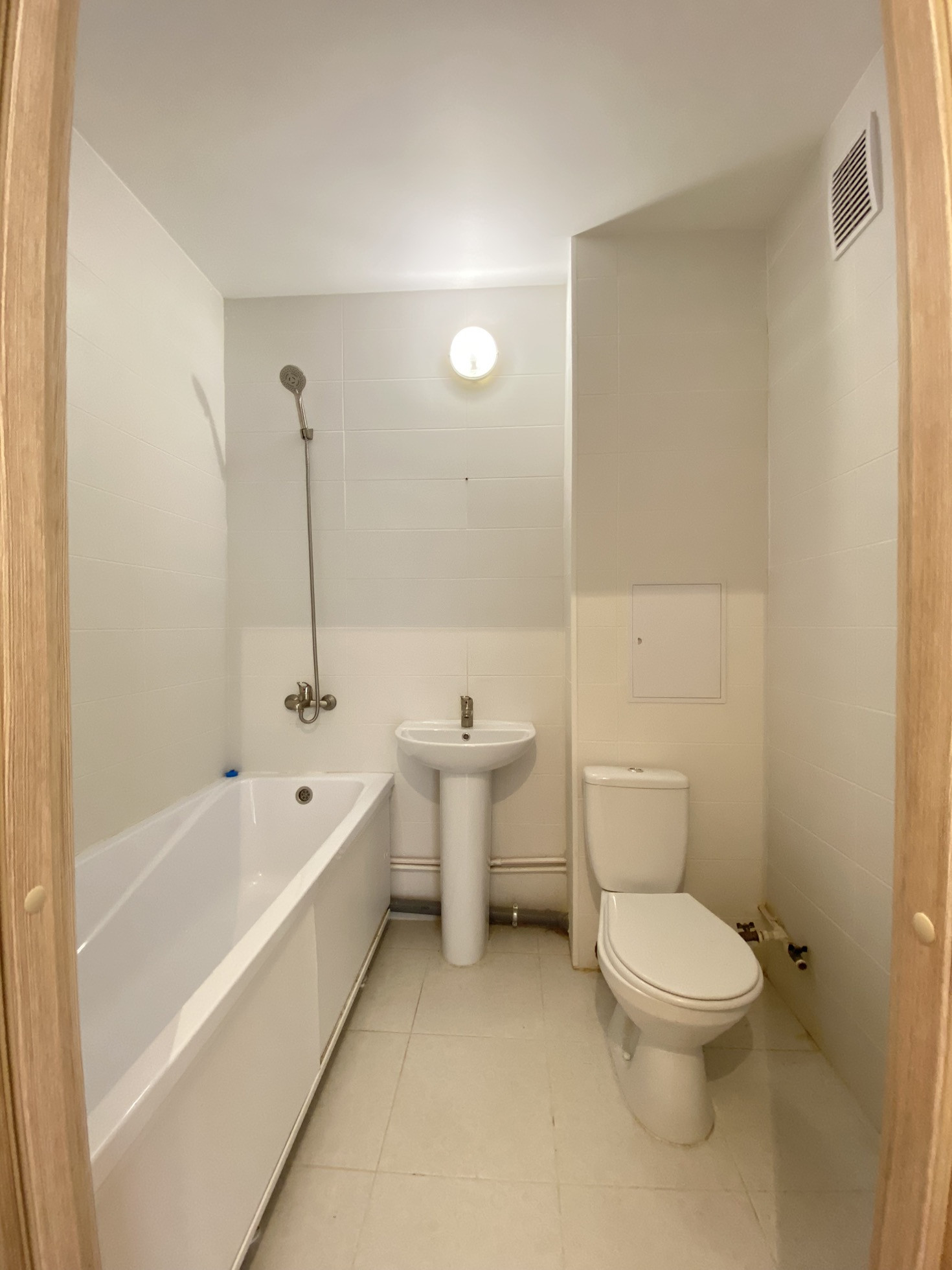 ✅ В Санузле удобная ванная, а не душевая кабина. Светлая плитка.