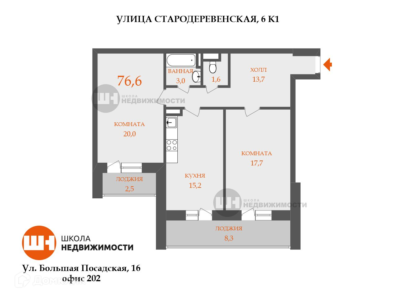 Общая площадь 76.6 м2
