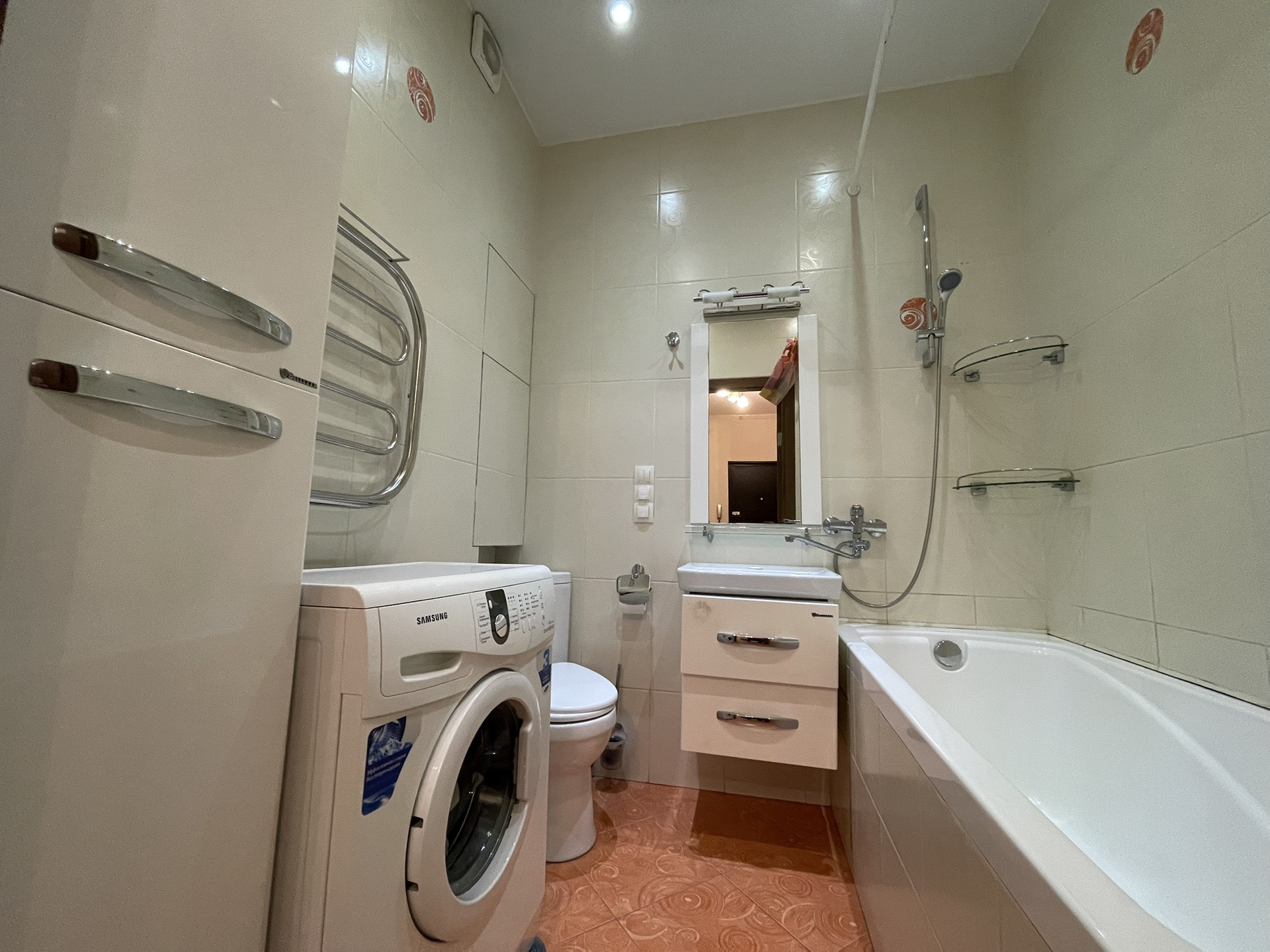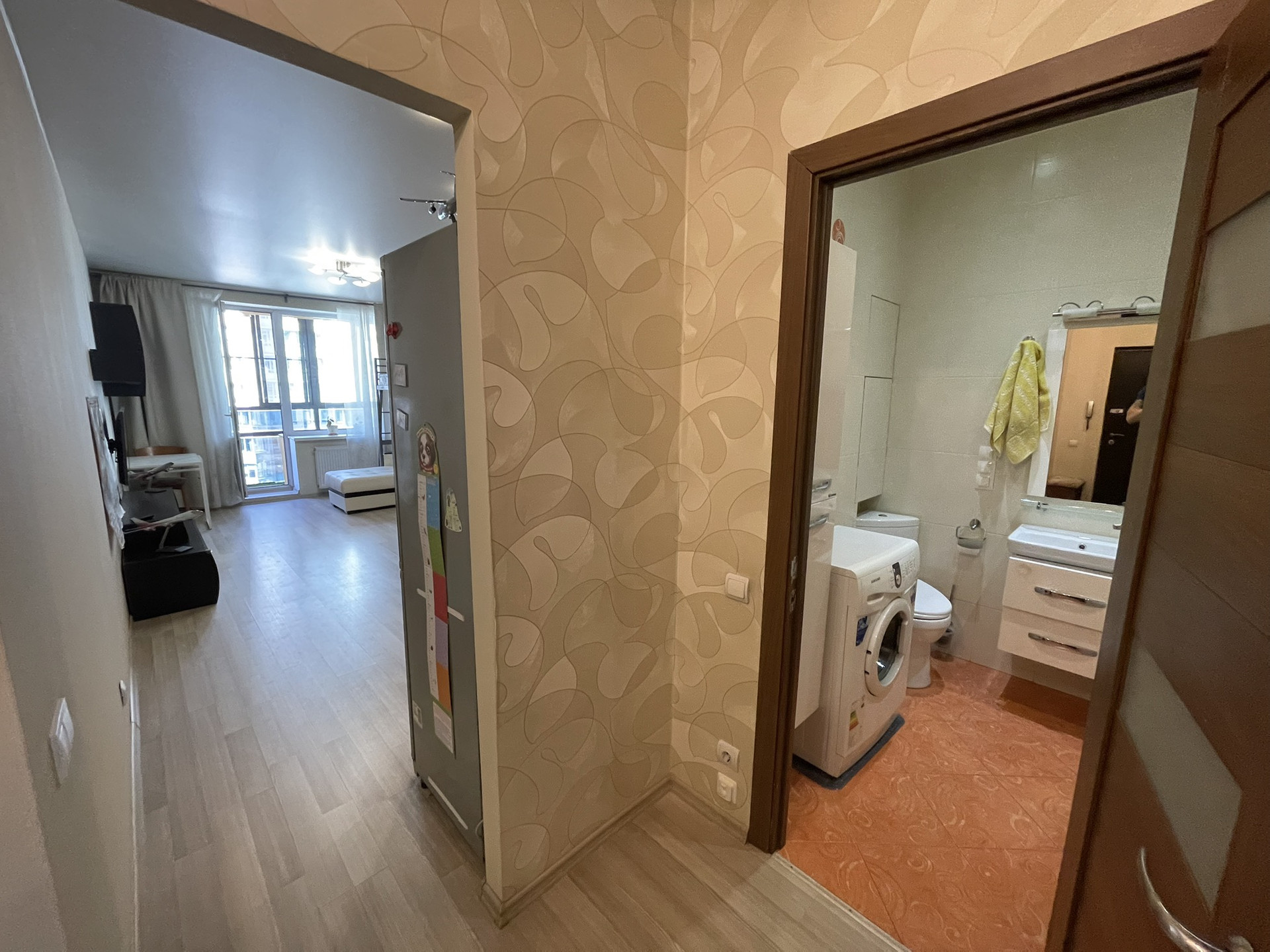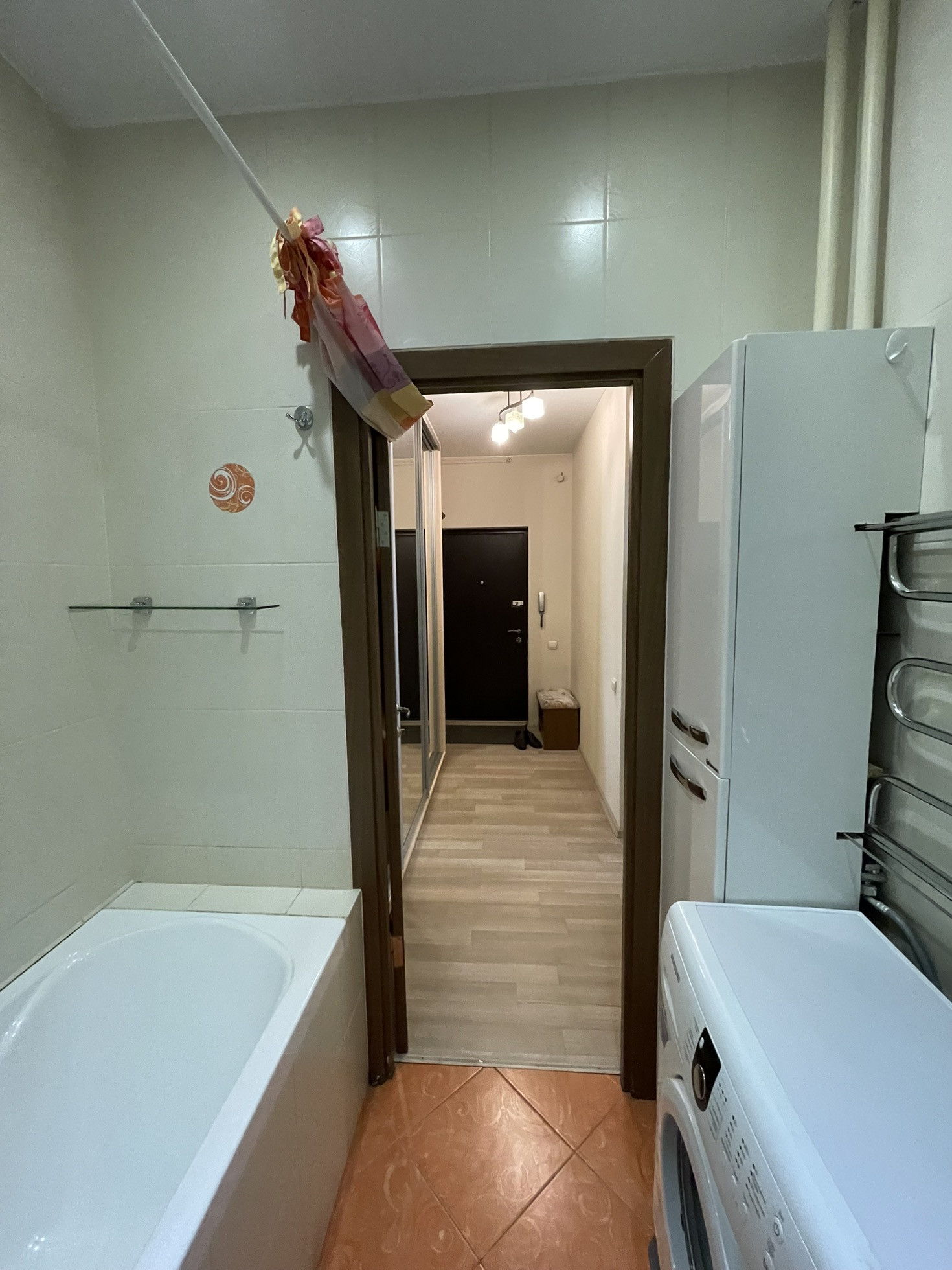 Балкон застеклен. Сан узел кафель. Водогрей спрятан в нише.