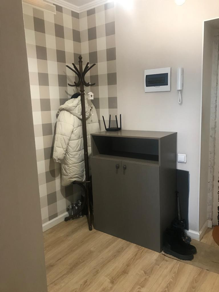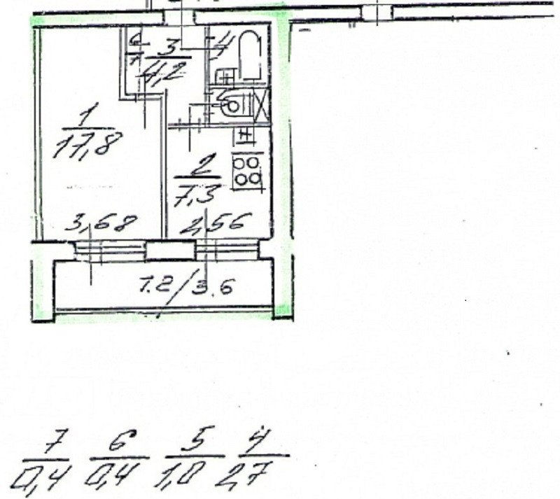 - Общая площадь квартиры – 33,8 кв.м., просторная комната – 17,8 кв.м., уютная кухня -7,3 кв.м., совмещенный санузел, и удобная прихожая -4,2 кв.м. По площади и планировке внутренних помещений, опять «золотая середина»: не большая и не маленькая, удобная прихожая и простор для жилого пространства, средних размеров кухня и т.д.