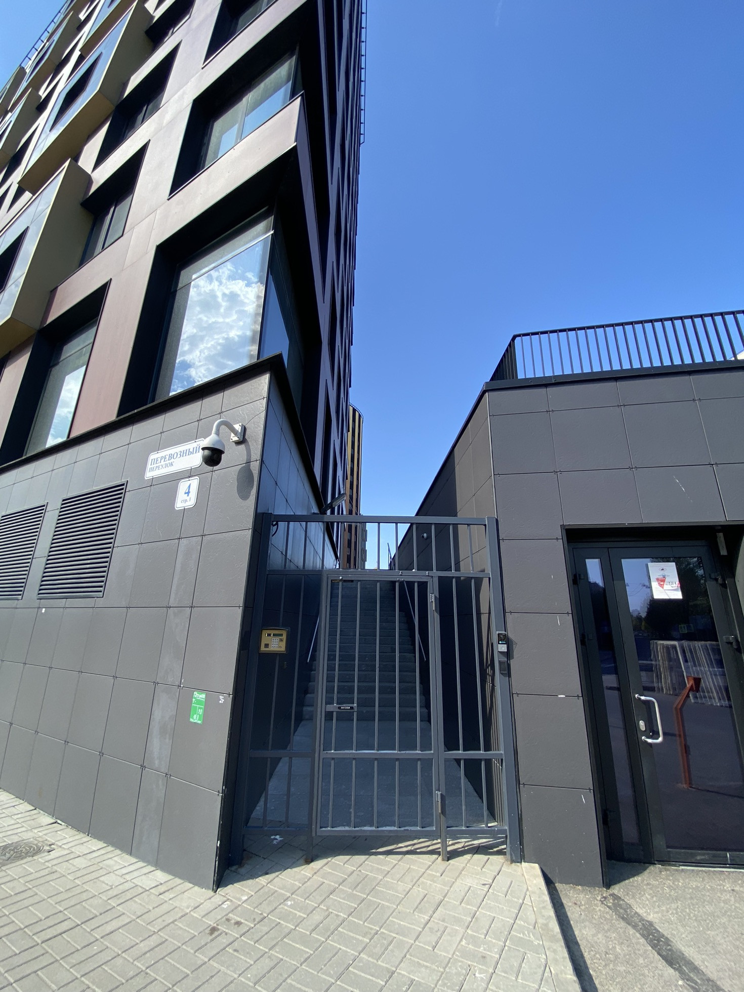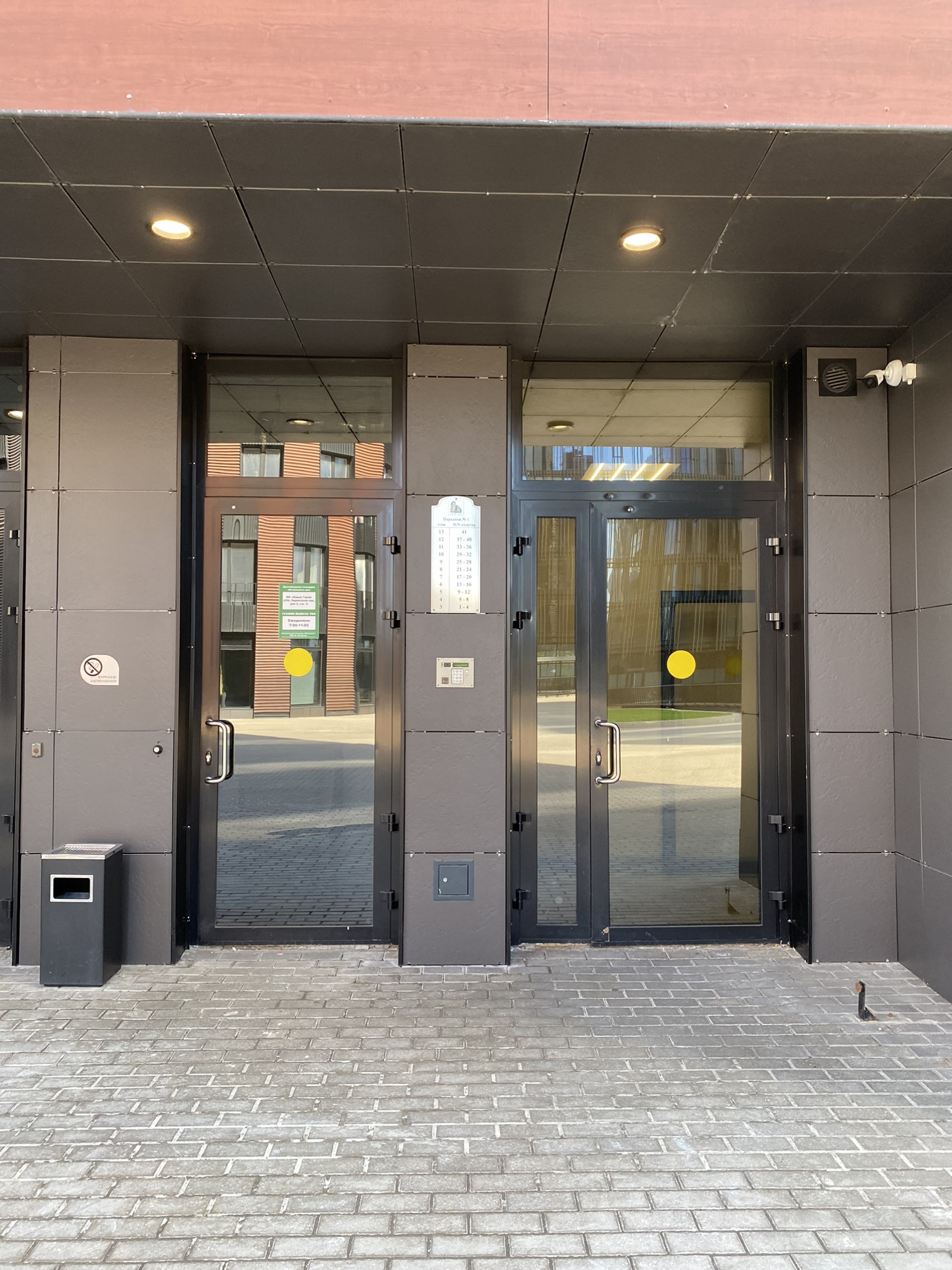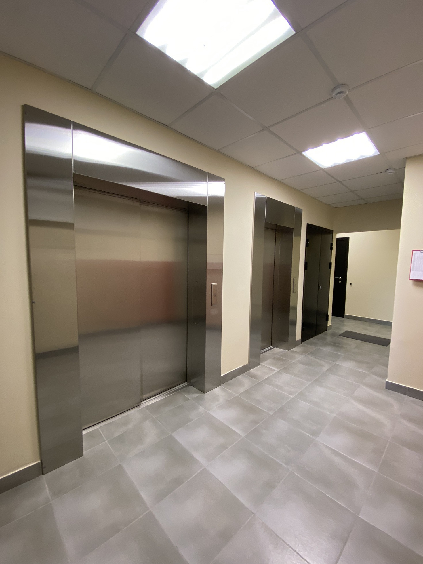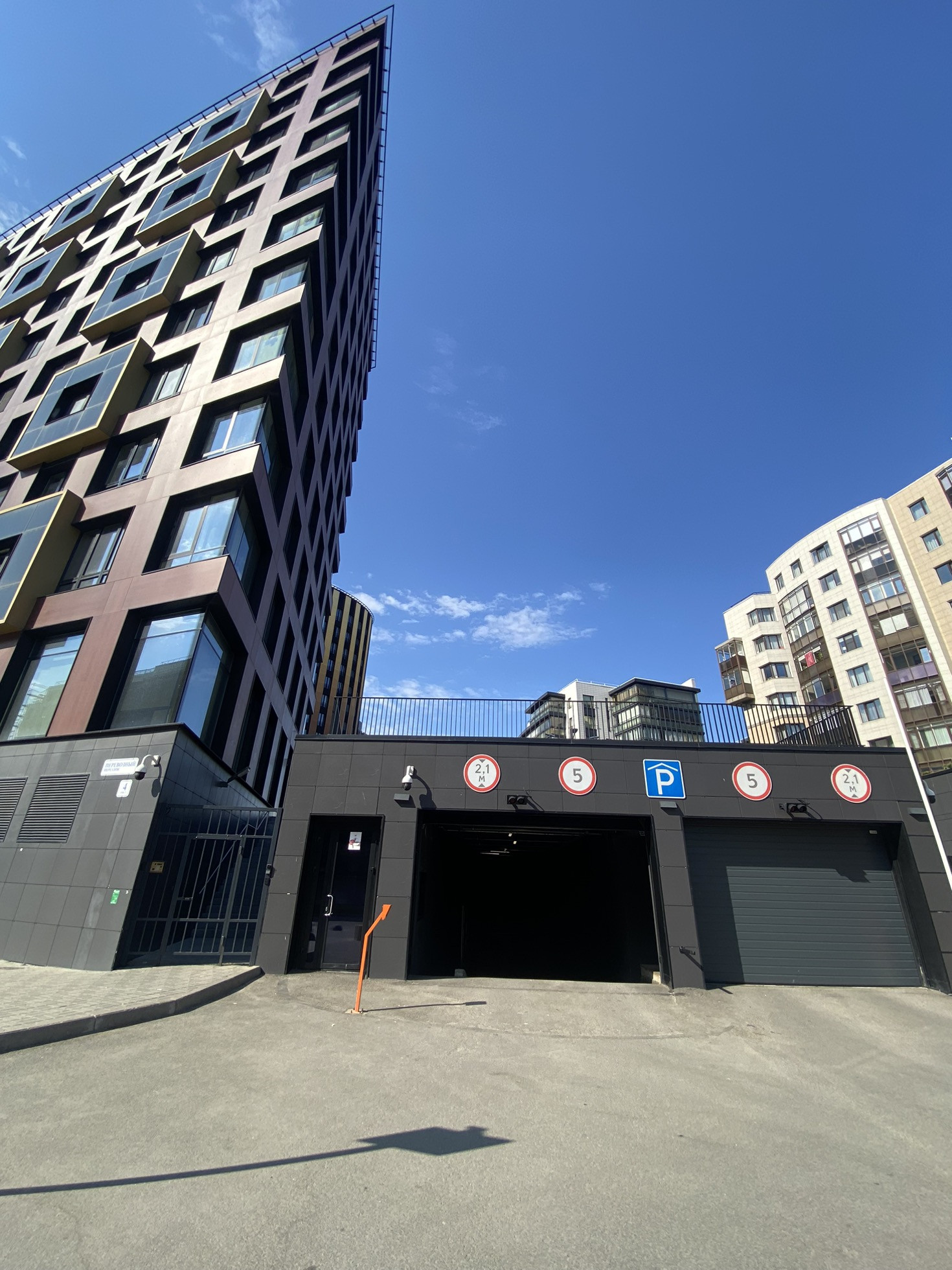 Лифт спускается в тёплый 2х уровневый паркинг.