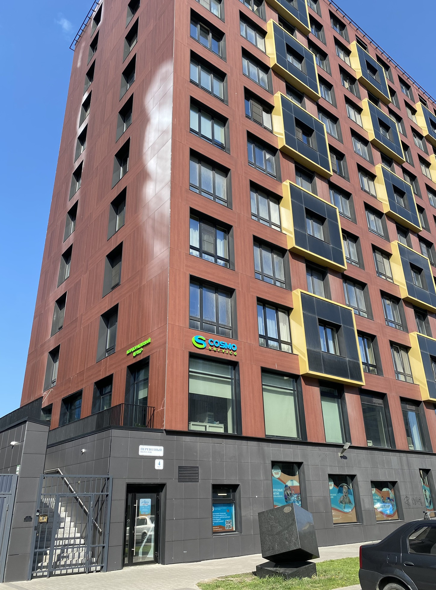 На первом этаже дома: мини Лента, аптека, детский бассейн. Территория закрытая с видеонаблюдением. Двор без машин.