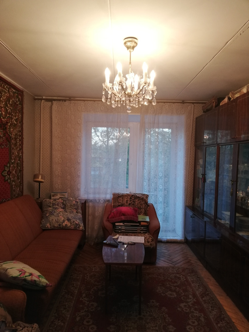 О квартире: Общая площадь 48,4 м2; площадь комнат: 15,8 м2+12,8 м2; площадь кухни 7,1 м2; санузел раздельный; два балкона 2,2 и 1,8 м2; две кладовки 0,2 и 0,2 м2. Окна выходят в просторный, зеленый двор. Квартира светлая, солнечная.