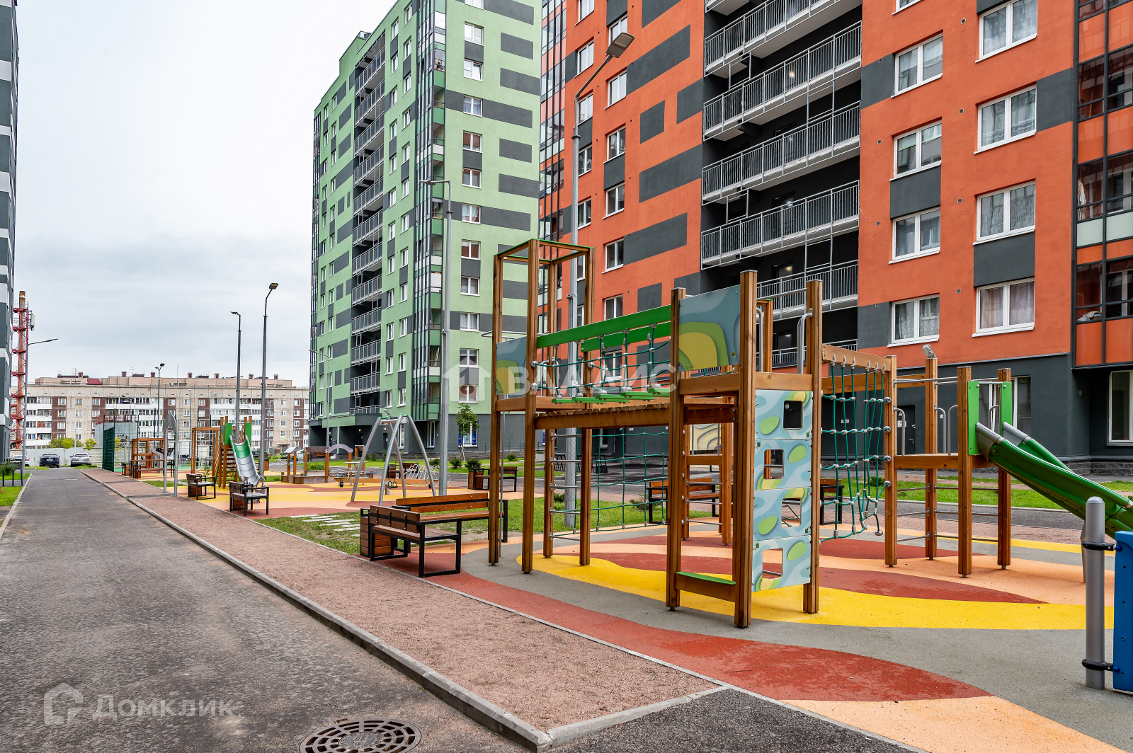О доме : ЖК «Ручьи» расположен в Красногвардейском районе.Всего 13 этажей.  Яркие лаконичные фасады окрашены штукатуркой разных цветов. Два детских сада на 160 мест, школа. Для автовладельцев предусмотрены наземные паркинги. На придомовой территории находятся детские и спортивные площадки, пешеходные дорожки и места для отдыха.