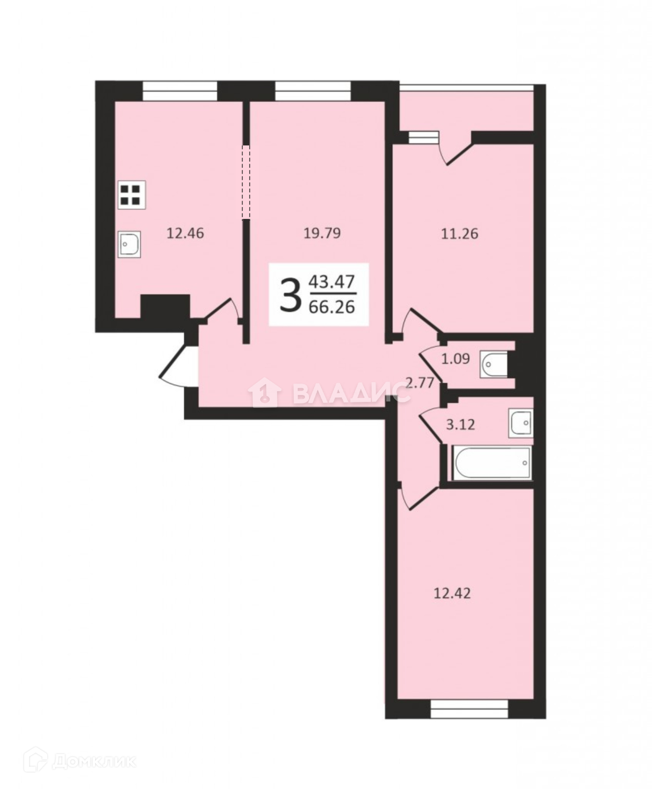 Общая площадь 66.26 м2