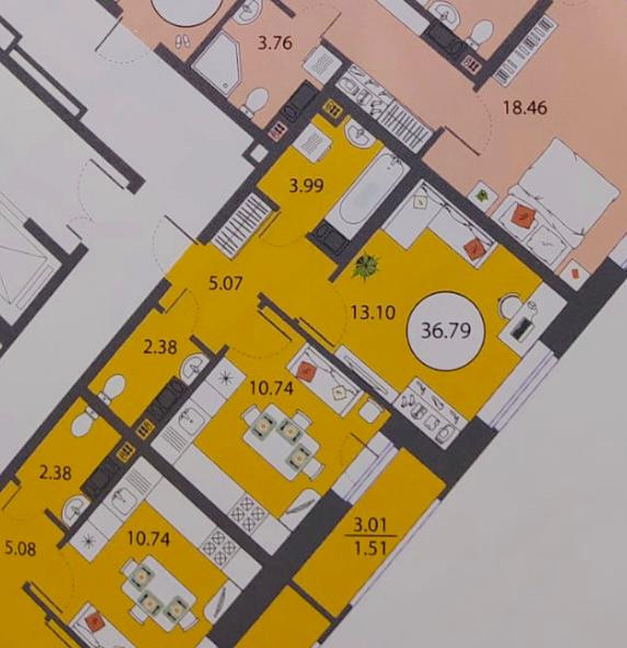 • Площадь кухни: 10.74 м²