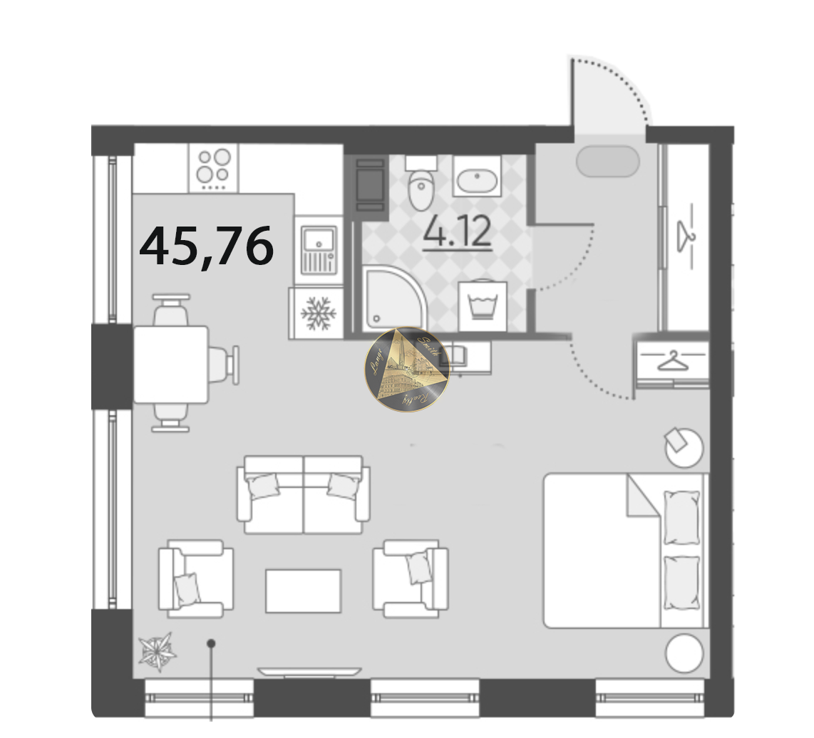 - Общая площадь квартиры 45,76 м2.