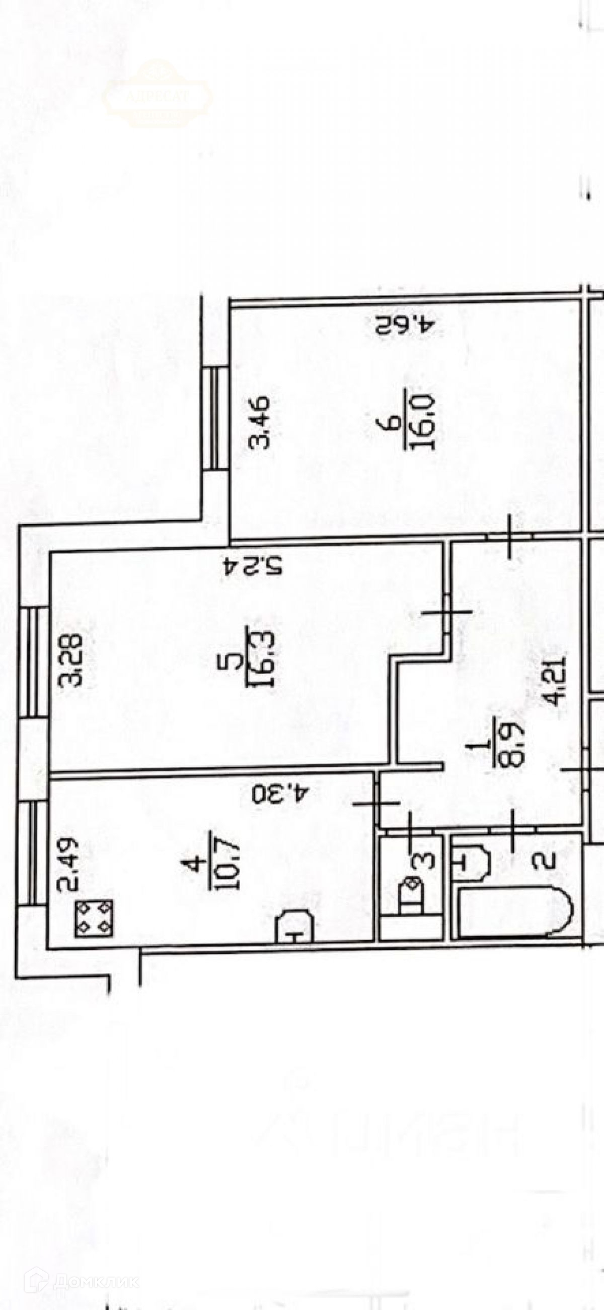 Общая площадь квартиры 55.5 м2. Этаж 2/12. Жилая 32.3 м2. Кухня:10.7 м2. Комнаты 16.3 м2, 16 м2. Санузел: 2.6 м2.