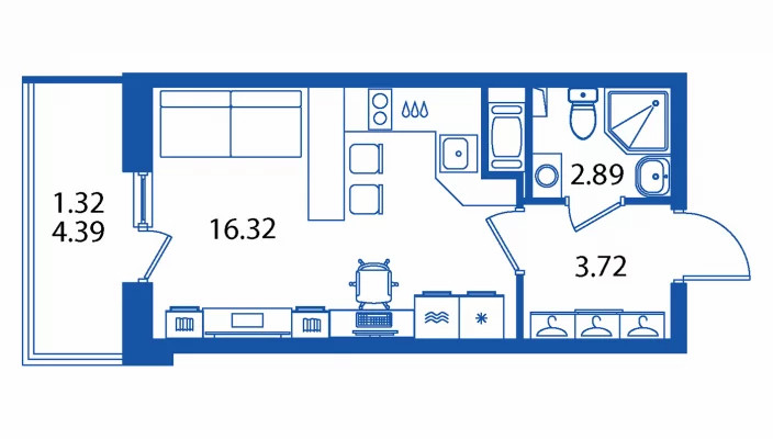 Общая площадь 23.33 м2
