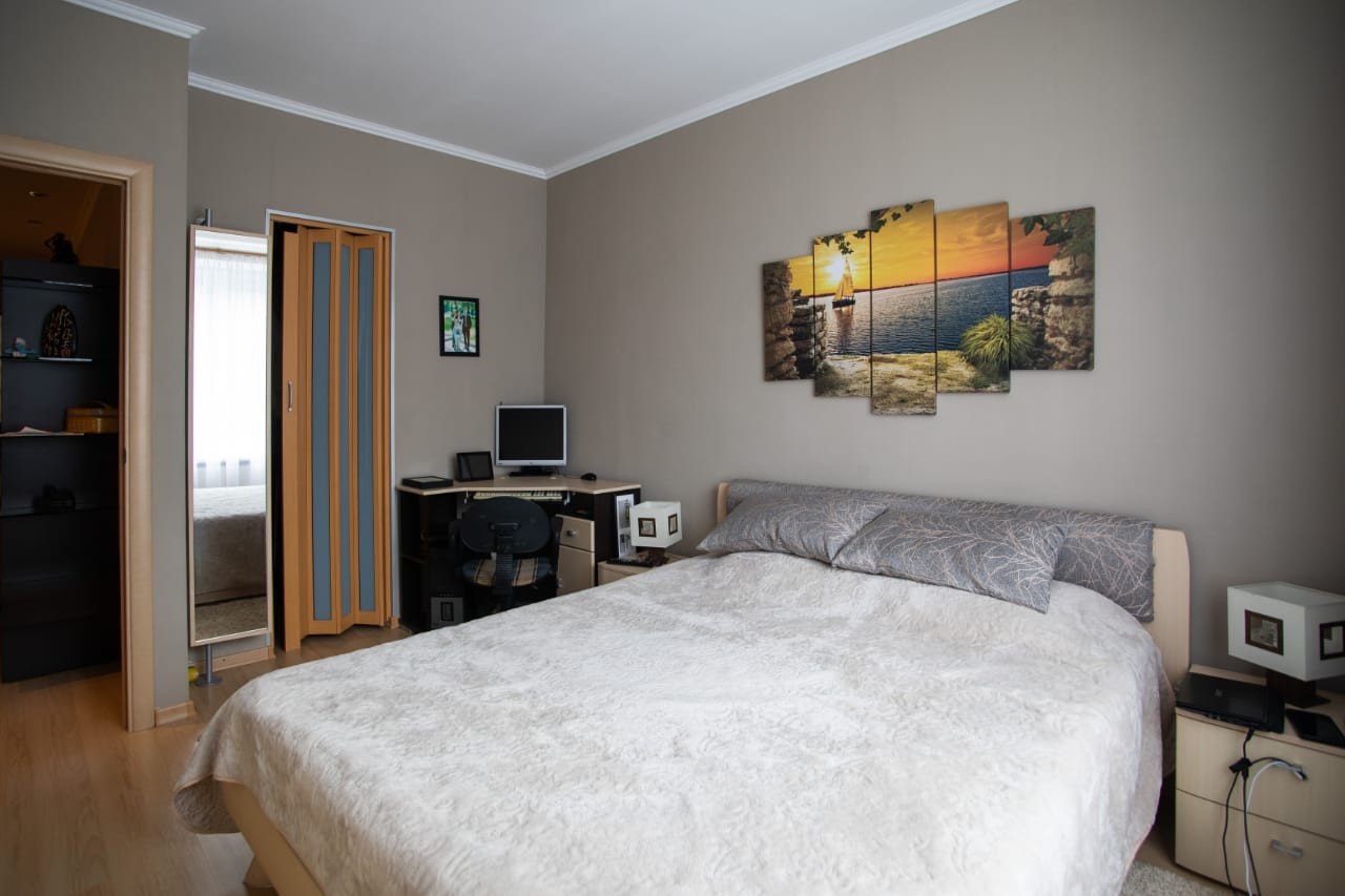 Продается светлая, уютная, трех комнатная квартира в хорошо развитом Приморском р-не. Отличная планировка, дизайнерский ремонт. Четыре жилые комнаты и просторная гостиная. Перепланировка выполнена не затрагивая несущих стен. Гардеробная, застеклённые лоджия и балкон. Продается с мебелью и бытовой техникой. Благоустроенный двор с детской площадкой. Служба консьерж видеонаблюдение. Также в собственности имеется машиноместо в подземном паркинге этого дома, которое предлагается к покупке.