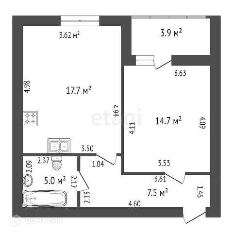 Общая площадь 48.8 м2
