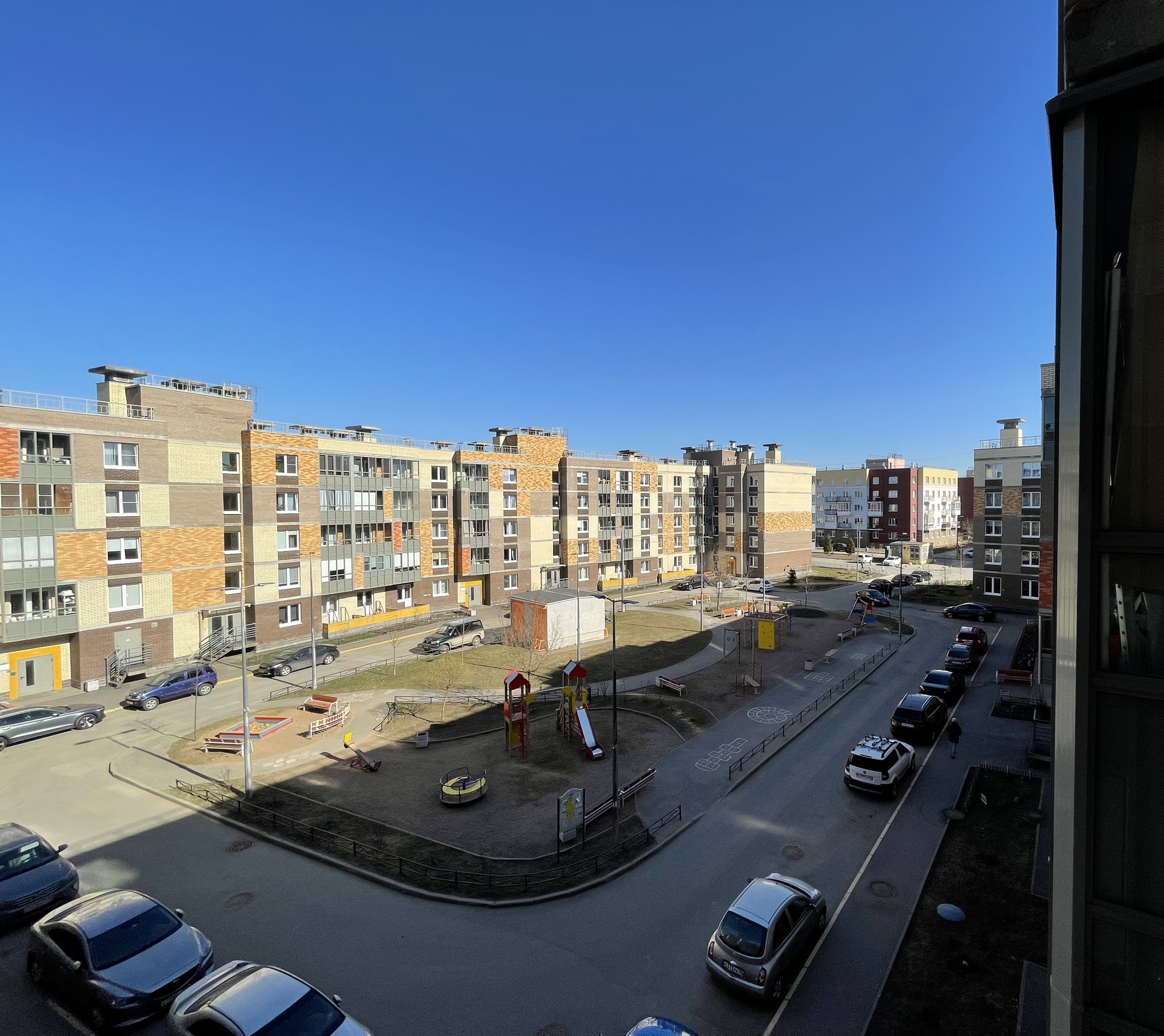 Ухоженные и чистые дворы, облагороженная придомовые территории. Хорошая пешеходная зона, велодорожки . Зимой горки для ватрушек. В каждом дворе оборудованная детская площадка со спортивным инвентарем.