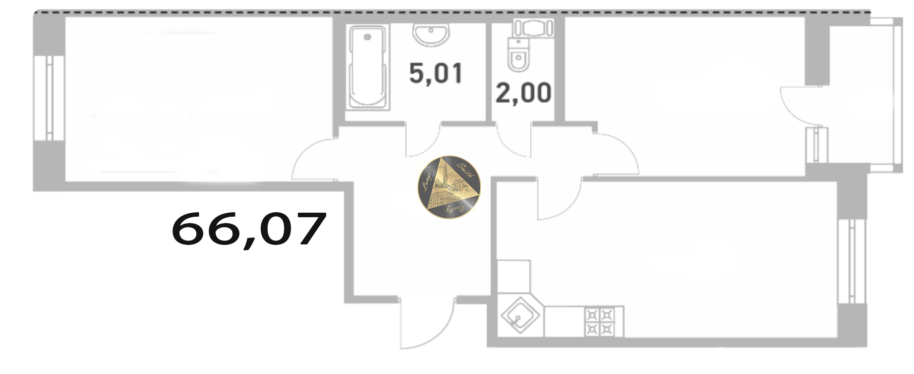 - Общая площадь квартиры 66,07 м2.