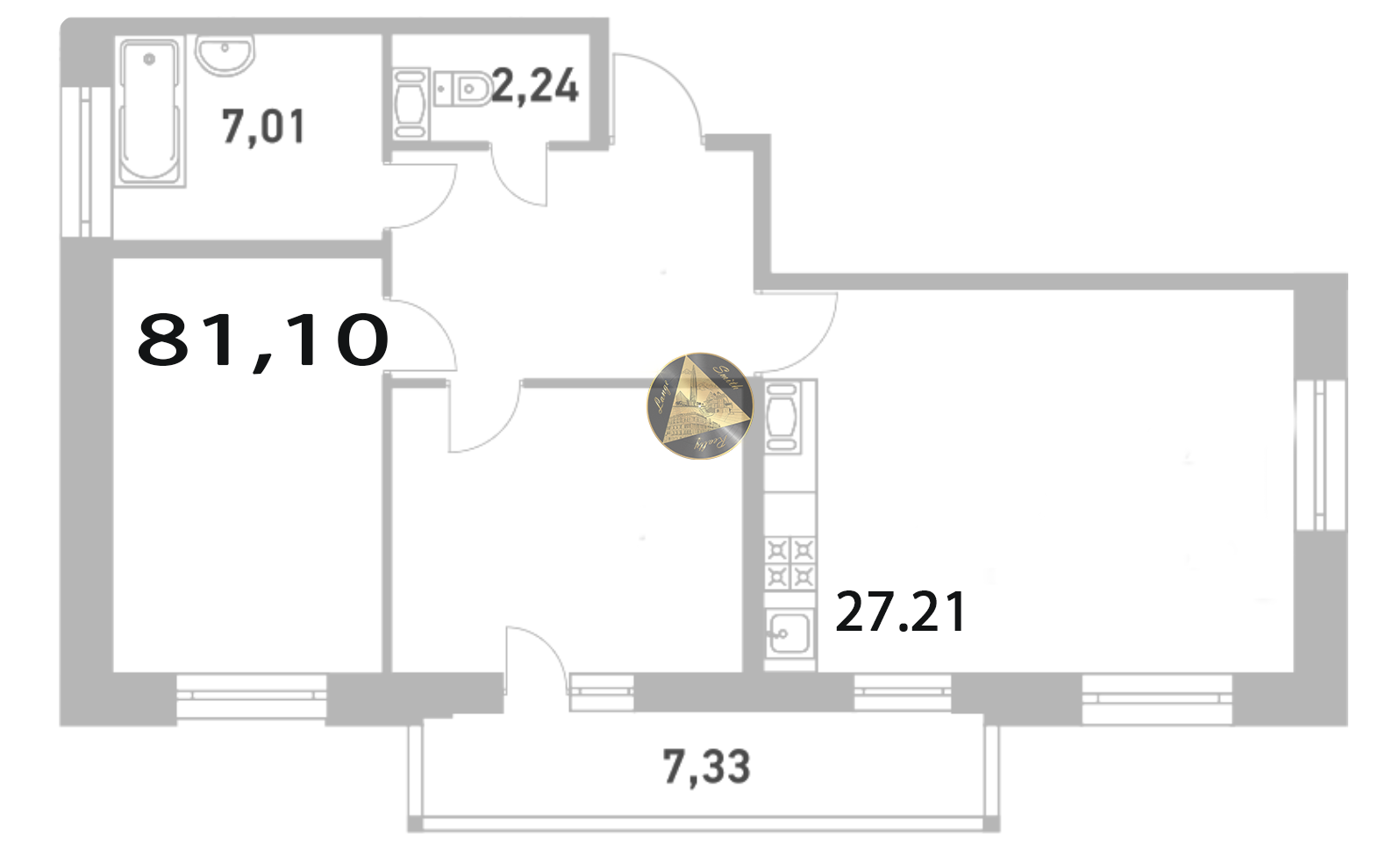 - Санузел: 2.24 + 7.01 м2