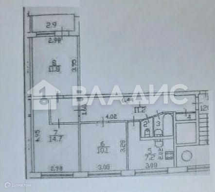 Общая площадь 58.8 м2