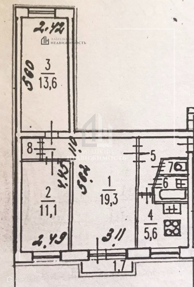 Жилая площадь 44 м2