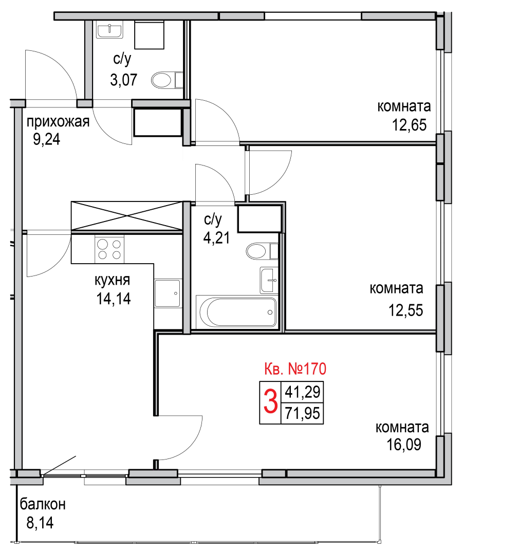Общая площадь 71.6 м2