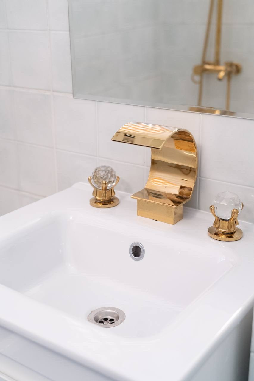 В ванной комнате установлена вся новая сантехника.