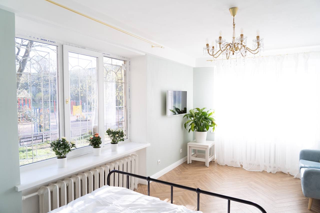 Квартира очень солнечная, имеет три окна, два из которых 204*156 и одно 150*156.