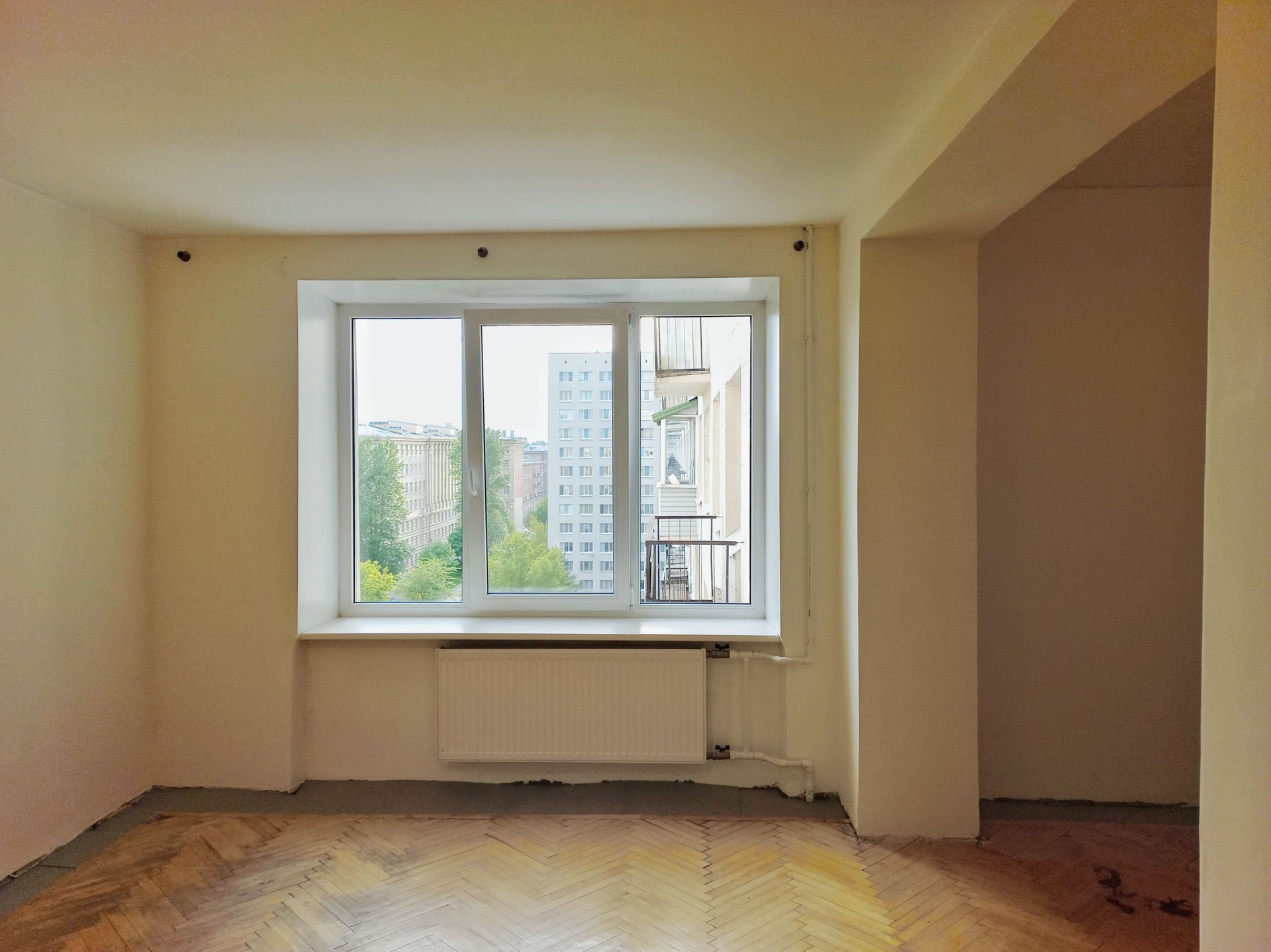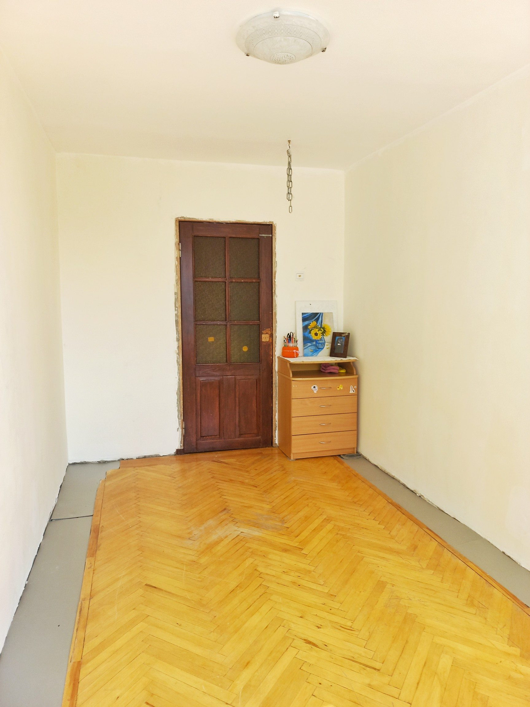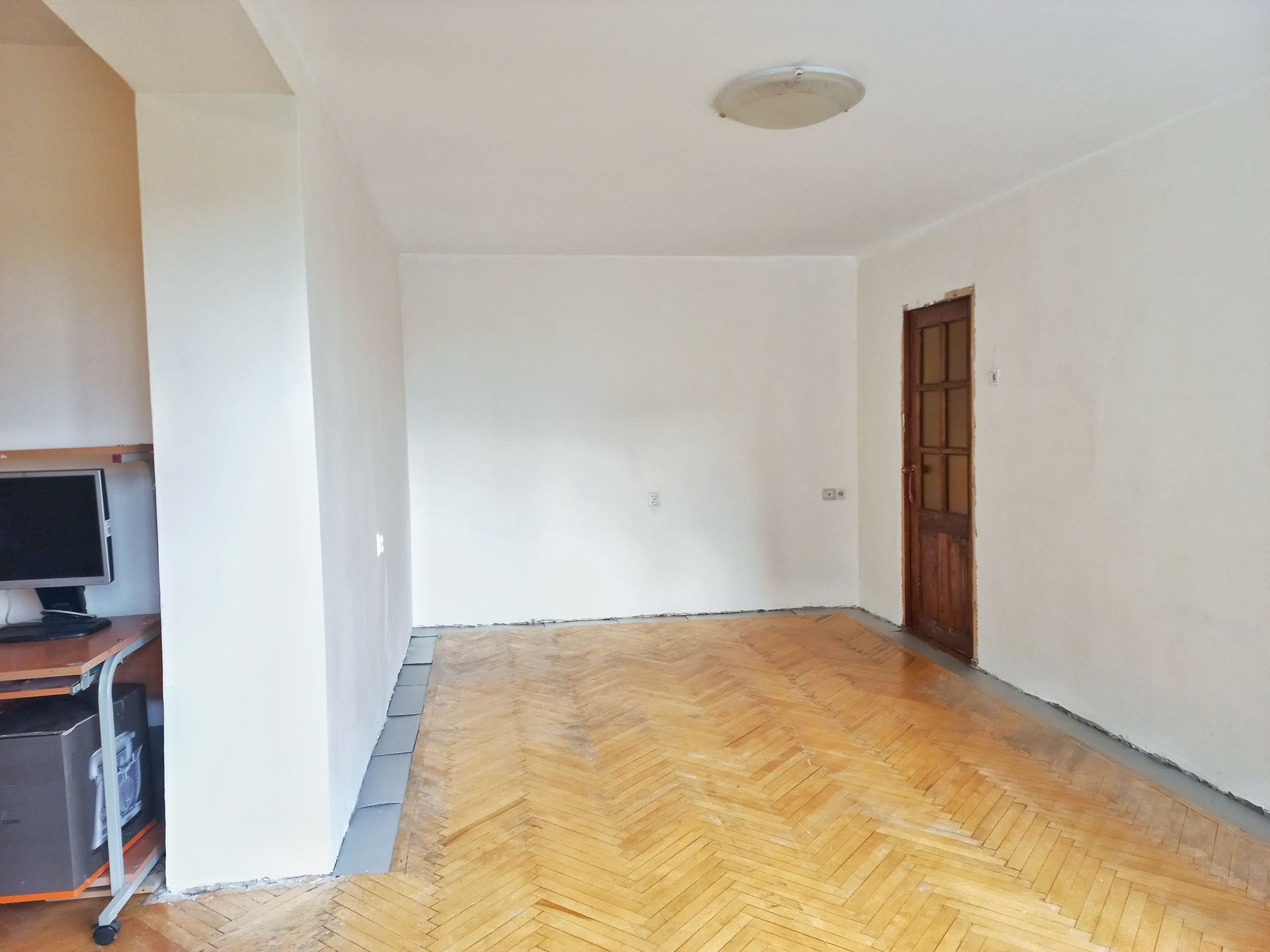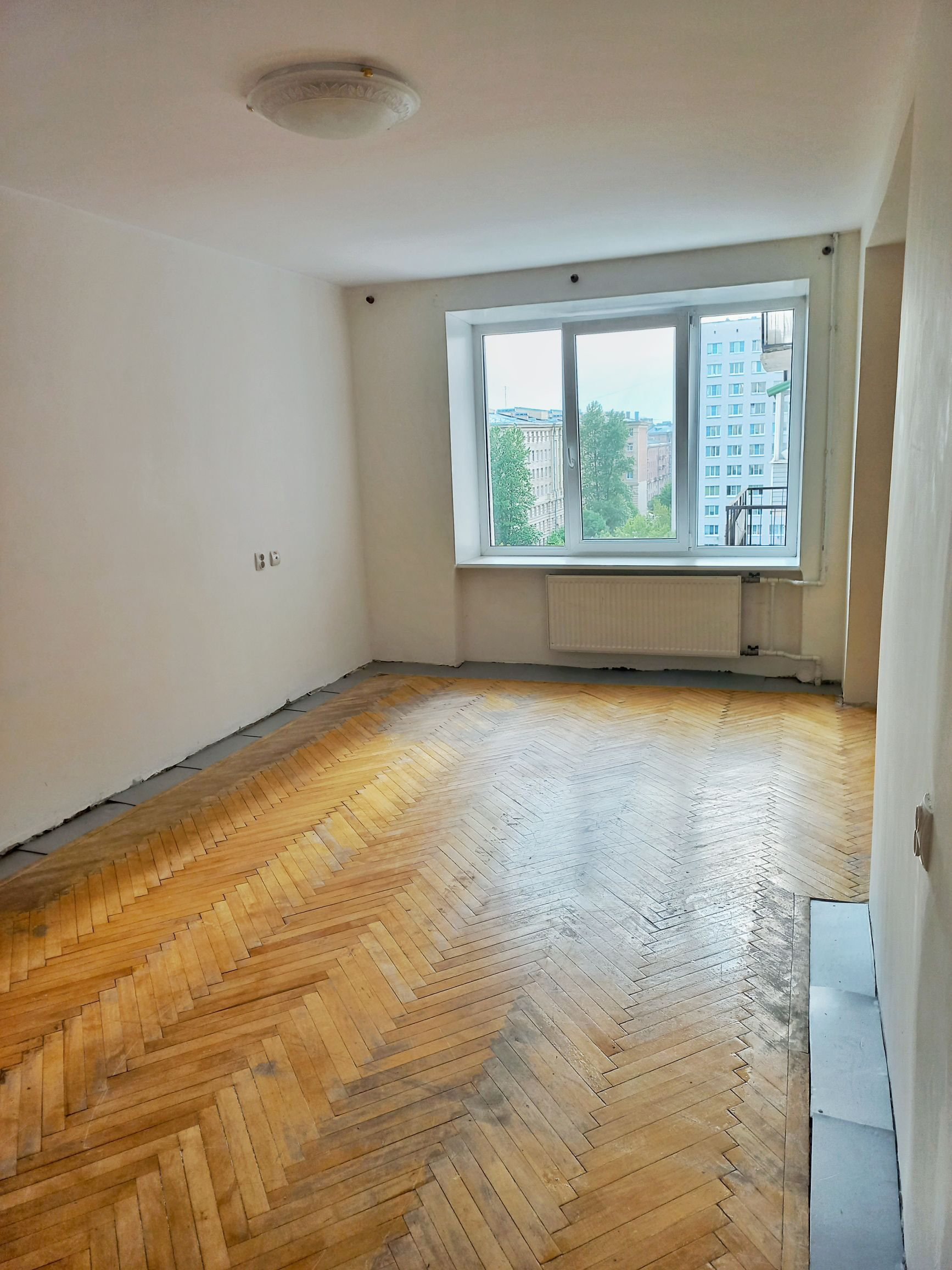 В комнатах паркет (состояние - хорошее для восстановления), стены и потолок - финишная подготовка под покраску / обои.