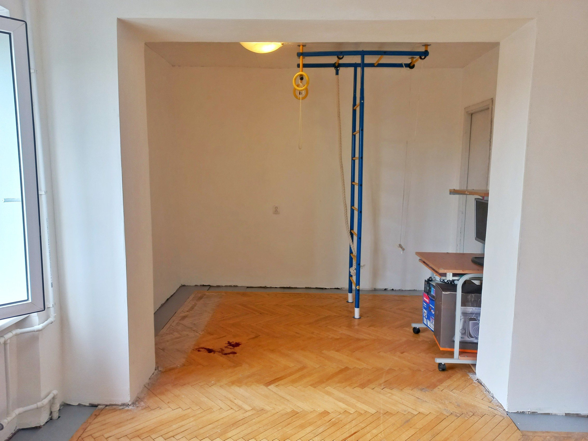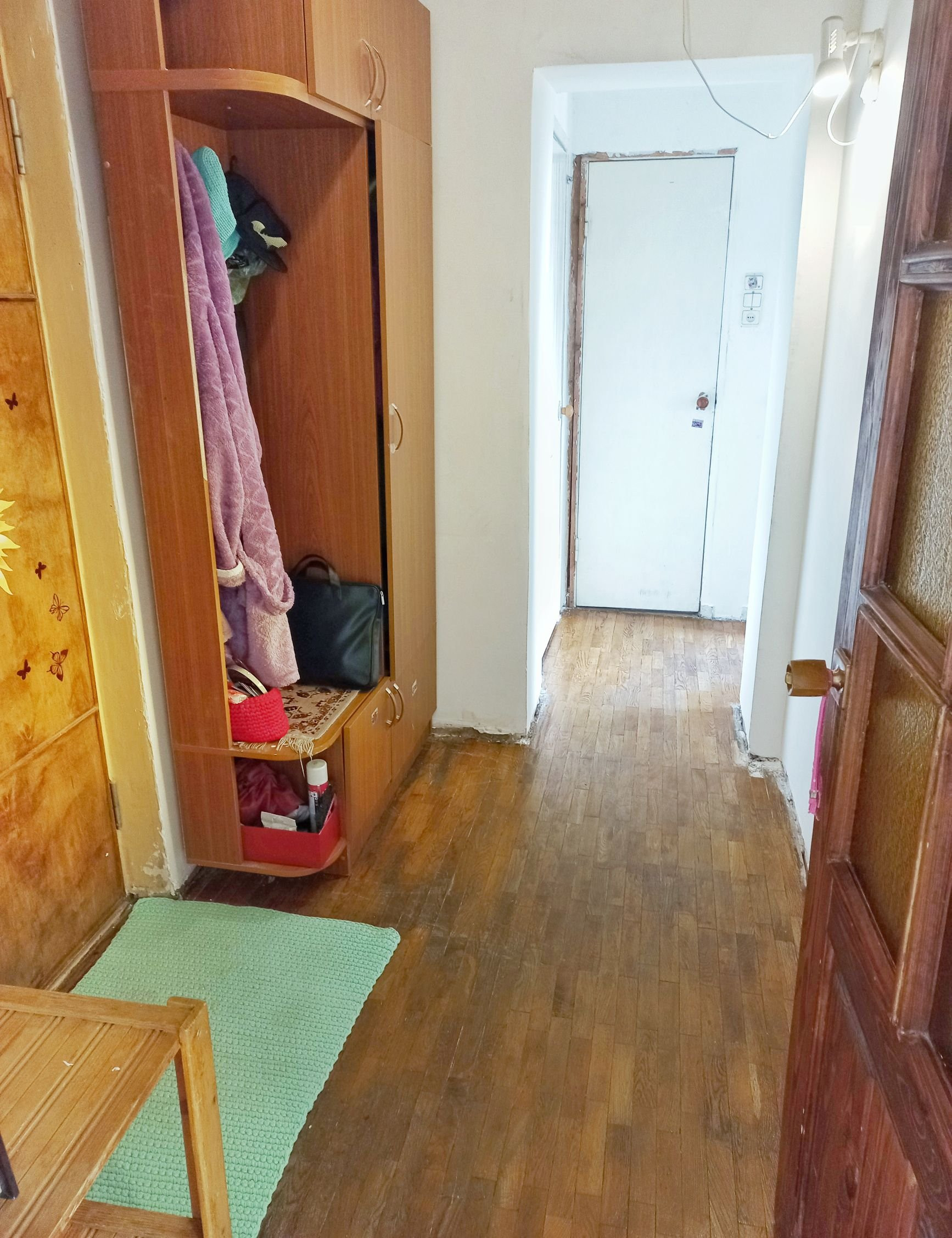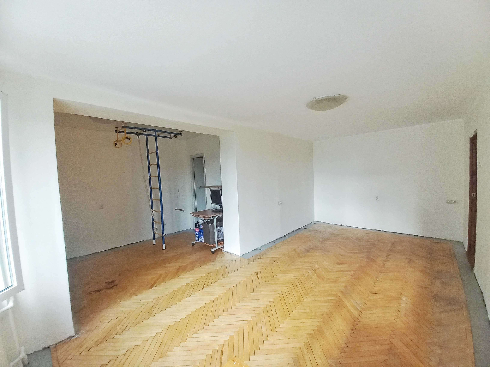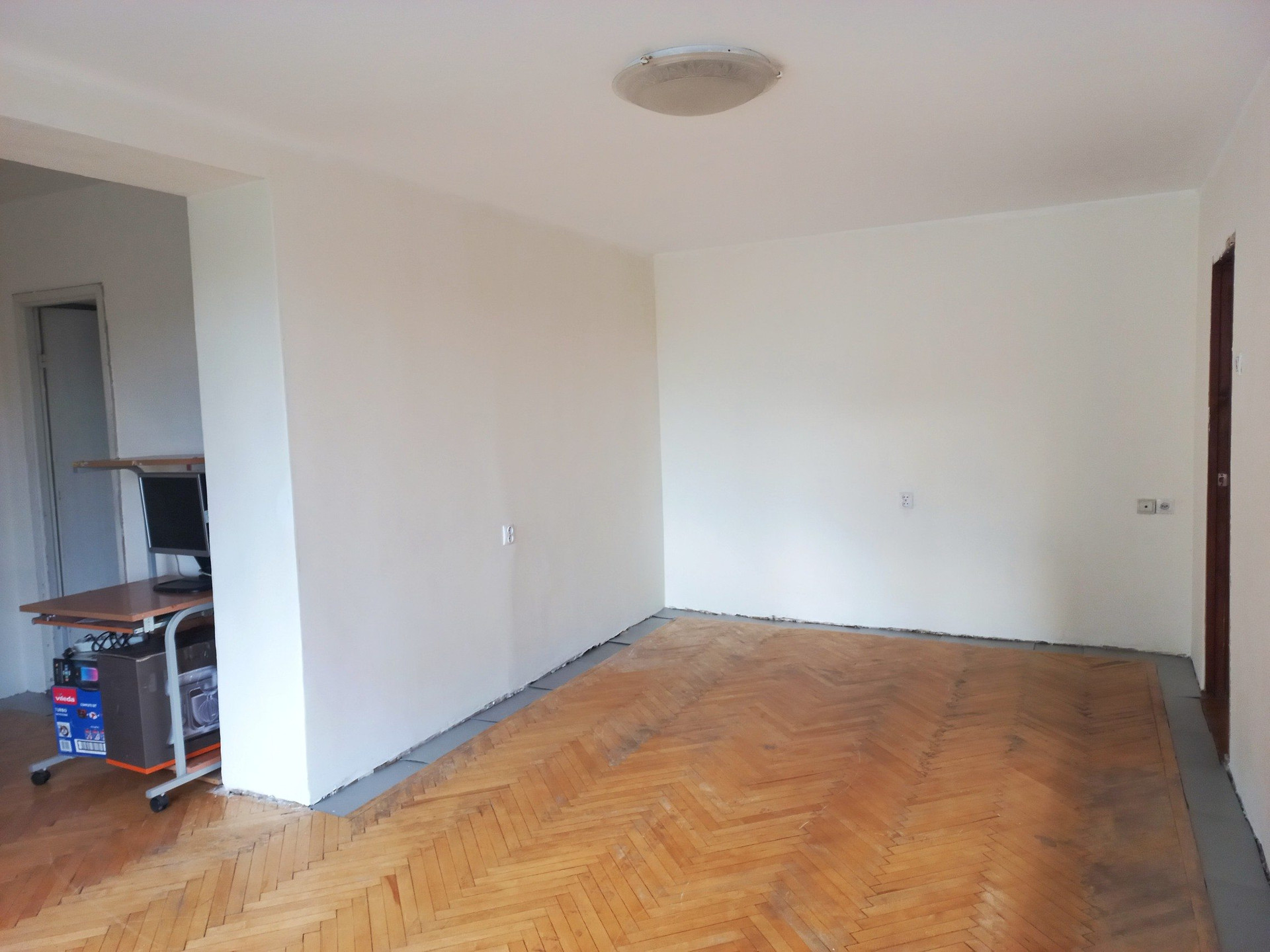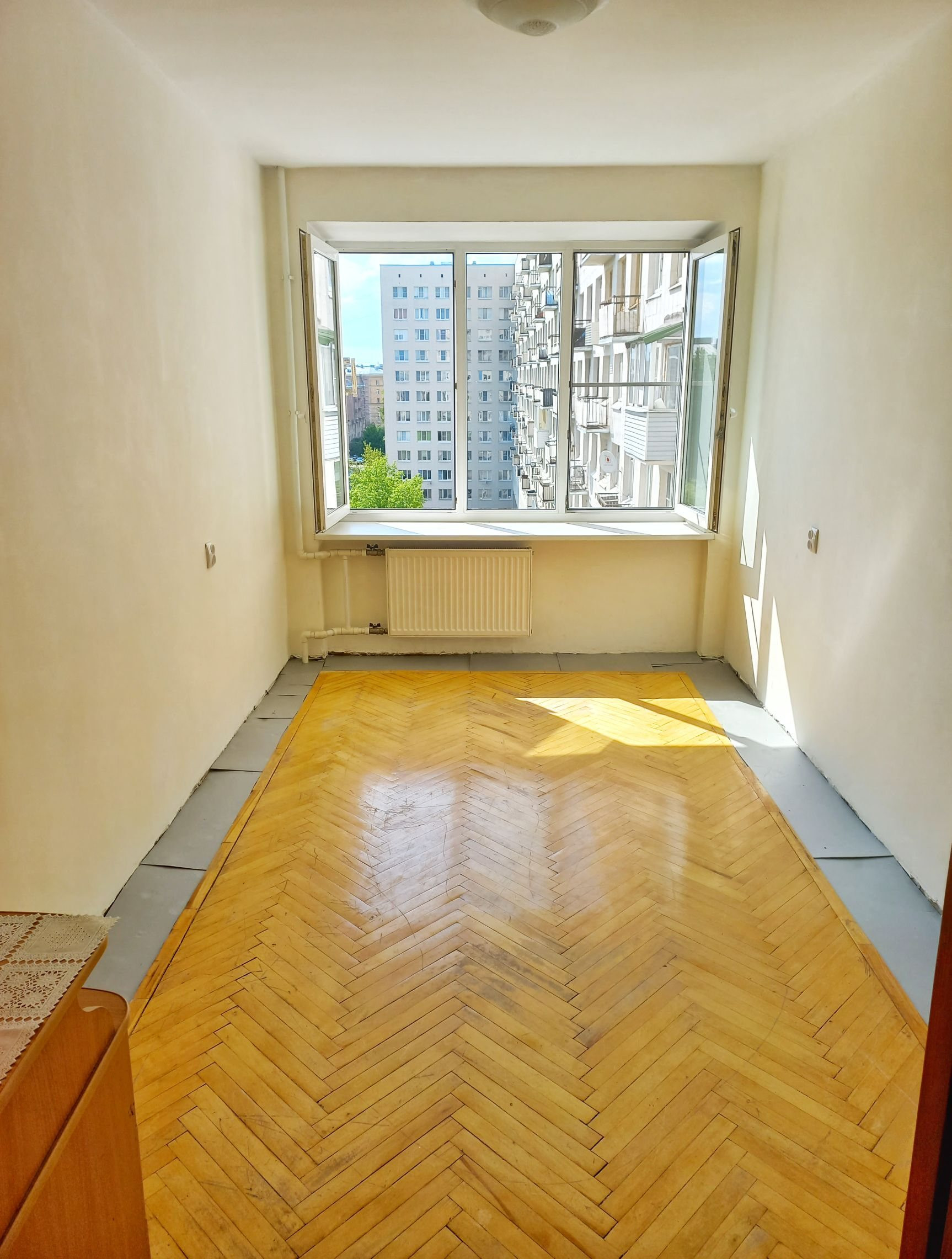 В комнатах паркет (состояние - хорошее для восстановления), стены и потолок - финишная подготовка под покраску / обои.