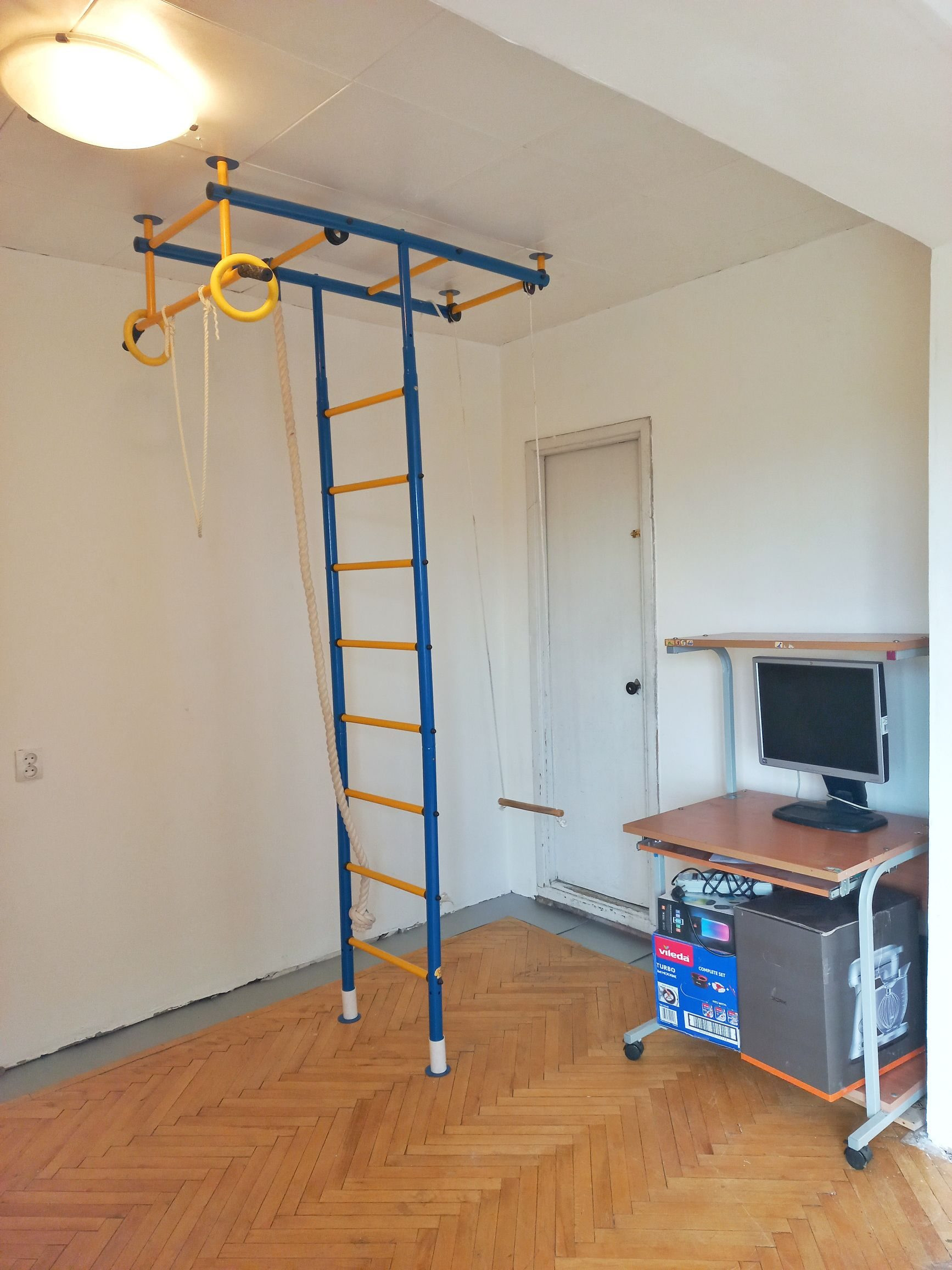 Две большие раздельные комнаты 26.9 и 10.6, выделенная ниша + большая кладовка (кабинет / гардеробная). Можем оставить универсальную Шведскую стенку (для детей и взрослых)
