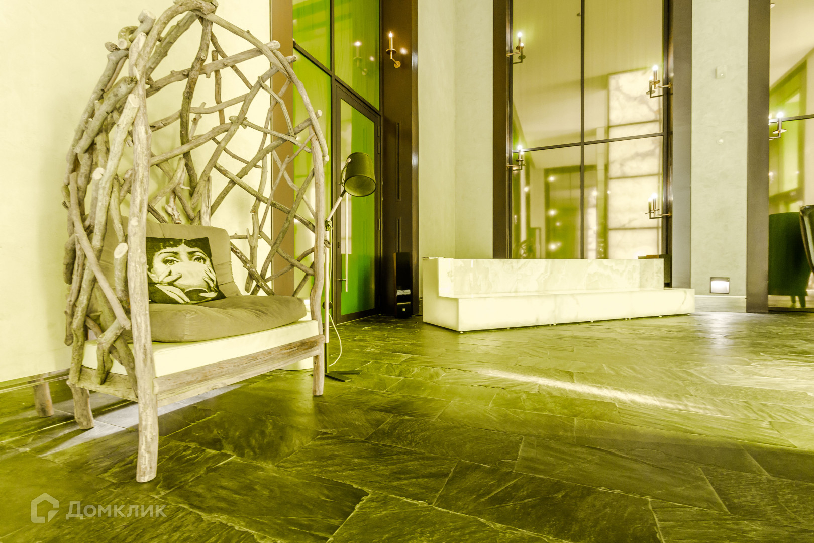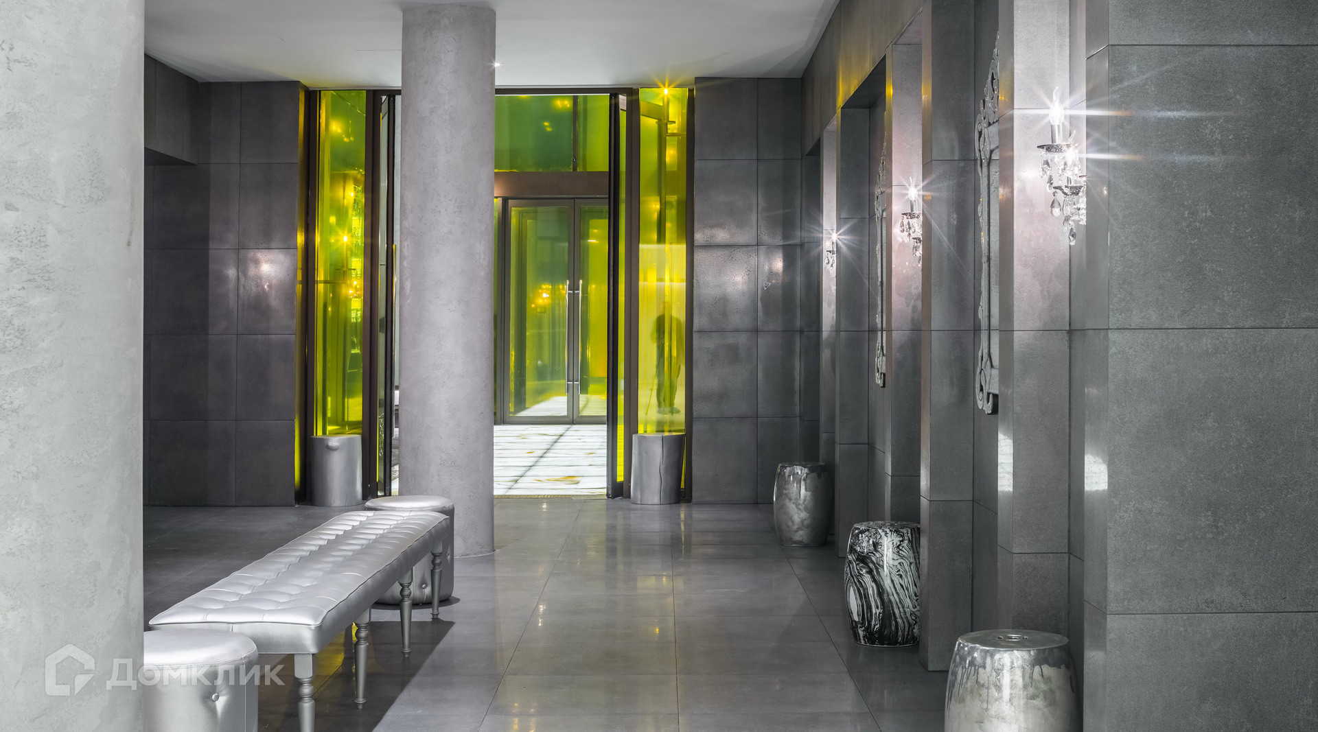 Высокие потолками 3 м., панорамные окна Reynaers, парадное лобби клубного дома, 12 метровые потолки в лобби, ониксовые колоны, авторская мебель, зеркала и освещение создают исключительную атмосферу.