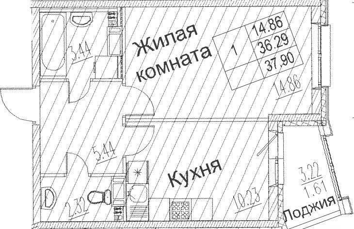 Общая площадь 37.9 м2