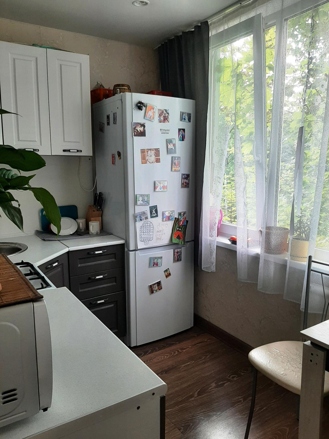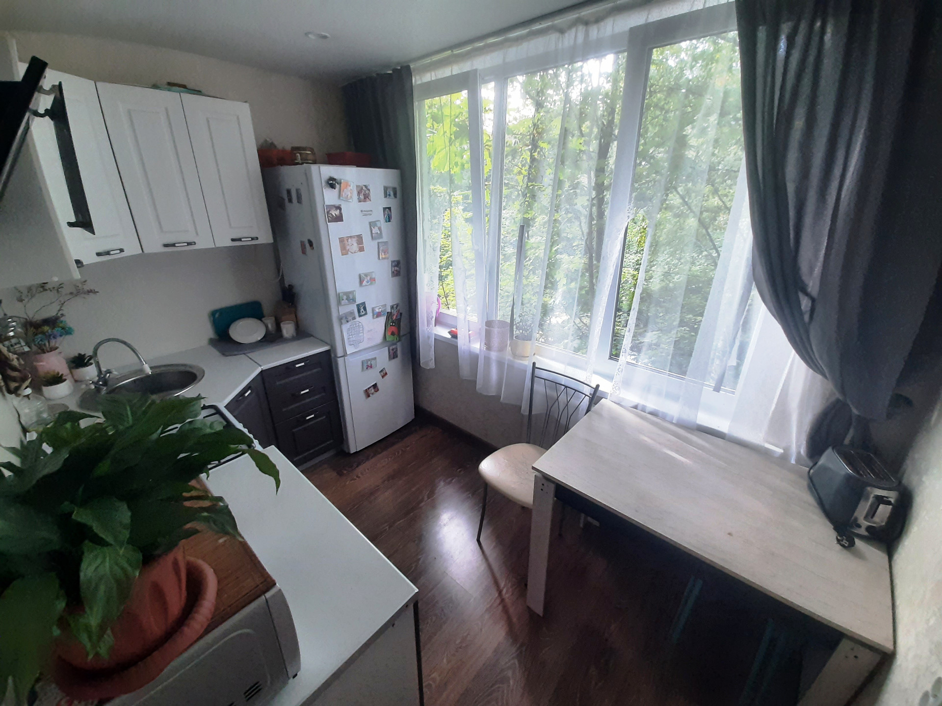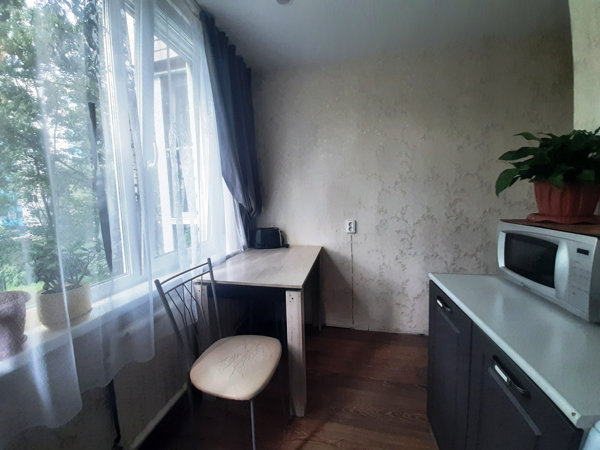 Двухкомнатная квартира, в малонаселенном доме, с хорошим ремонтом. Квартира светлая, окна выходят на две стороны, светлая продуманная кухня, комната с выходом на застекленный балкон с видом в зеленый двор, большой шкаф остается новым собственникам, есть так же встроенный шкаф в прихожей.