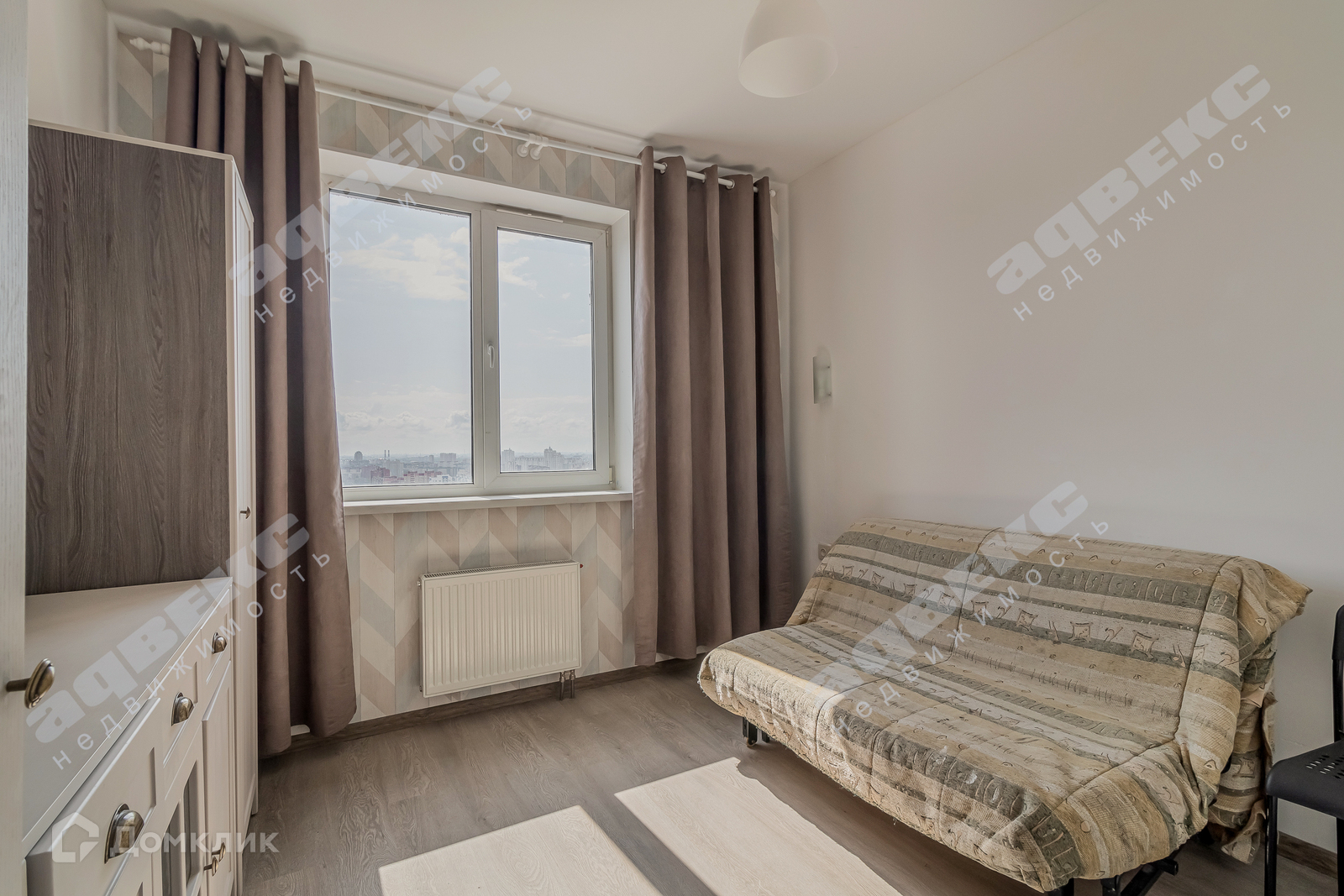 Очень светлая квартира и удобная тем, что вид на 2 стороны- на восток и на запад;!!! 24 этаж : никто не шумит сверху,  не слышно дороги.