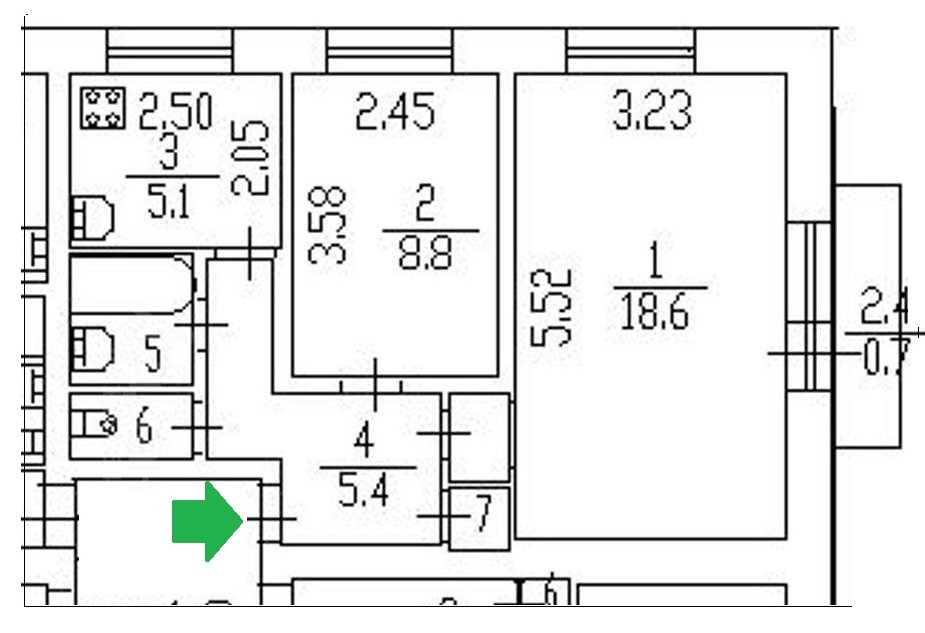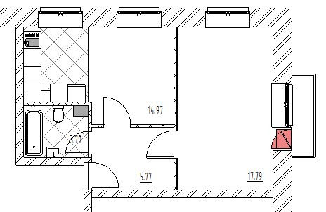 Есть возможность переделать в Евро 2-шку с кухней 15 м2.  Смотрите пример перепланировки.