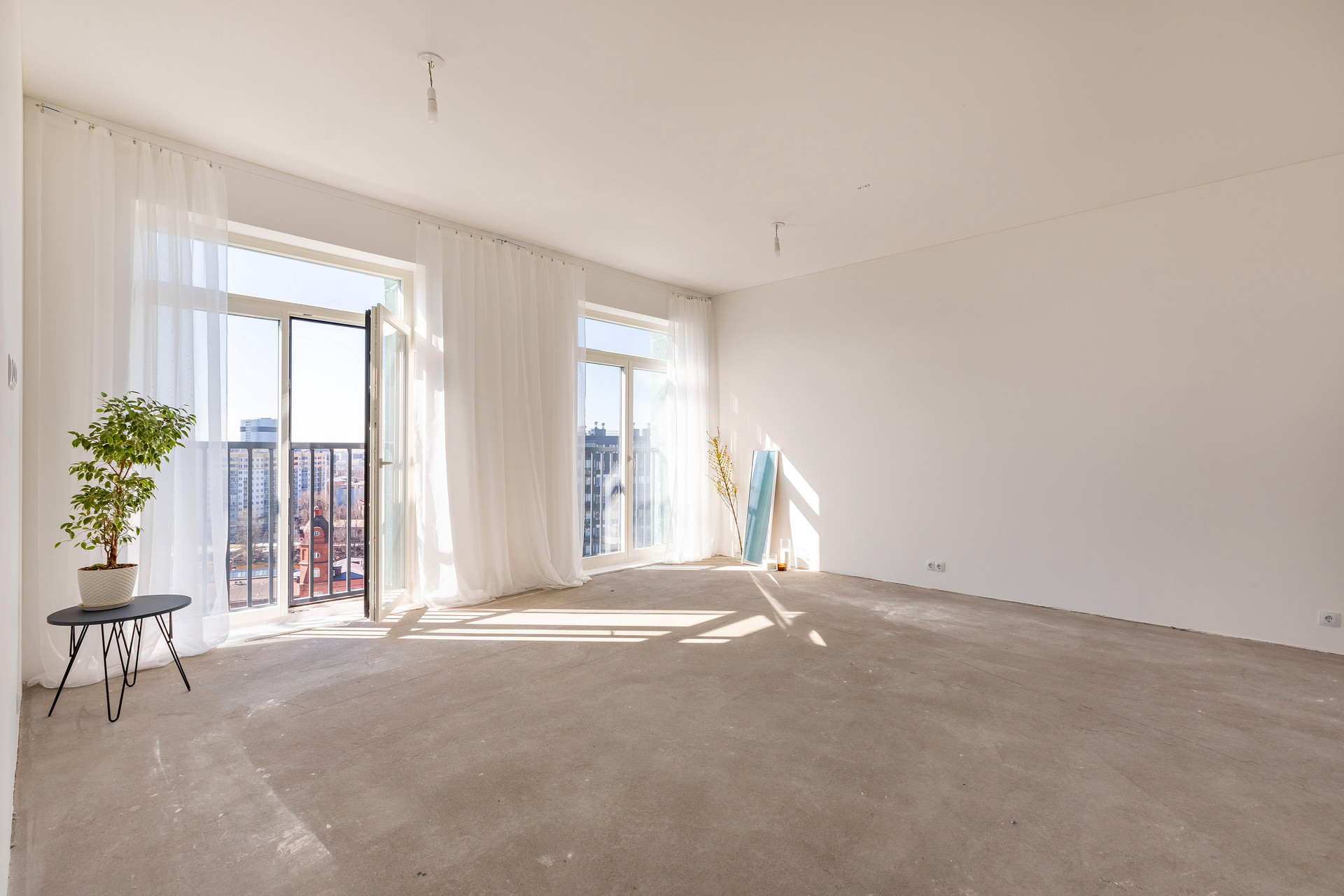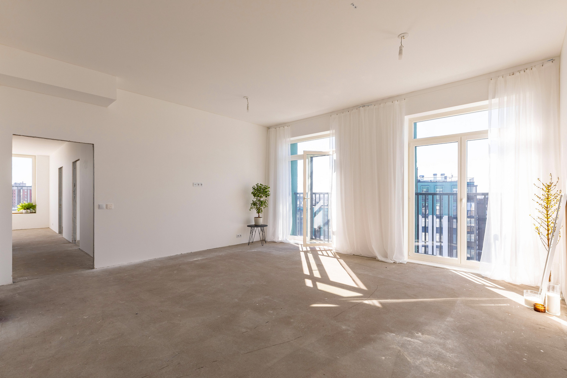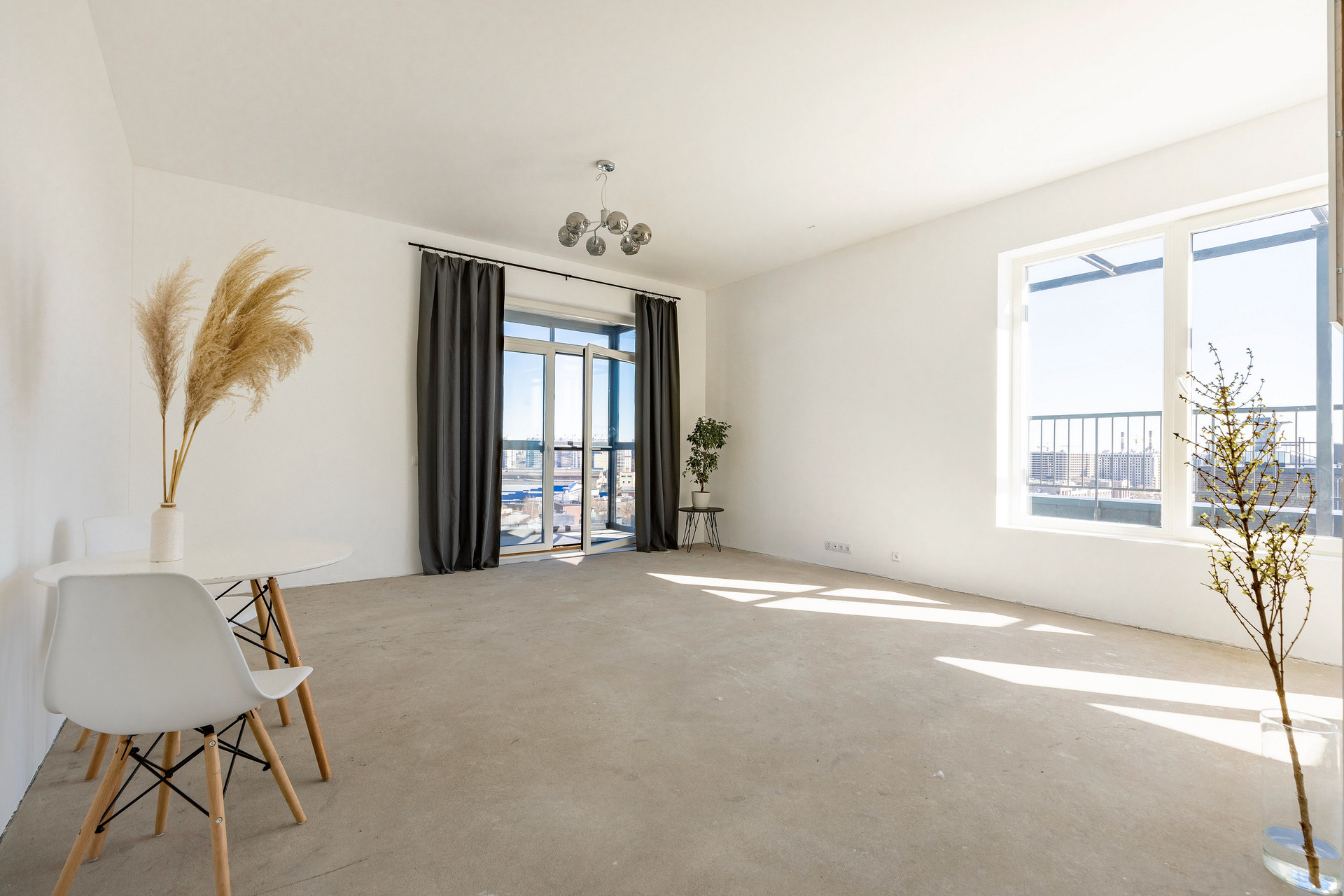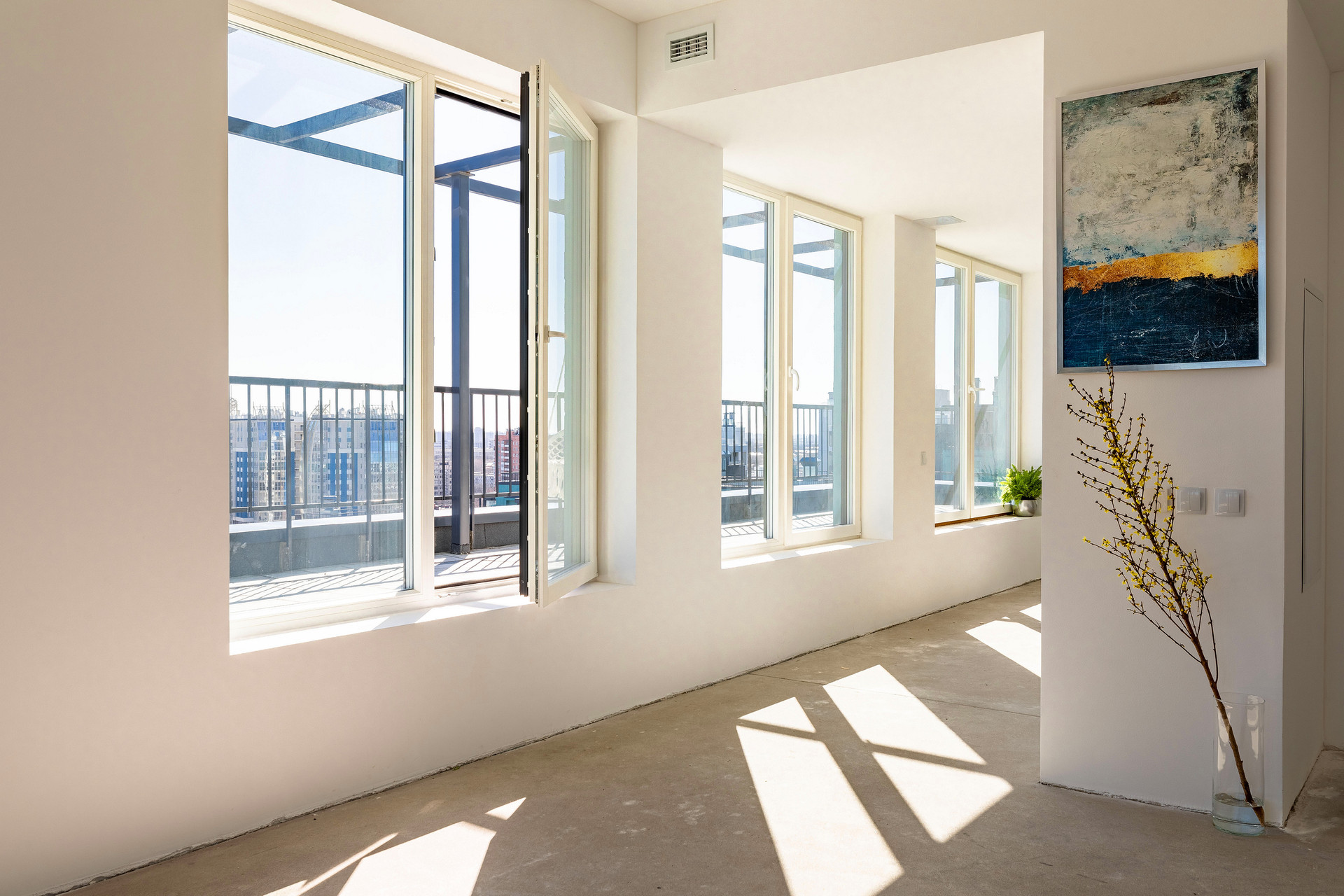 Предчистовая отделка whitebox, высокие потолки 3 метра, система вентиляции с рекуперацией воздуха.