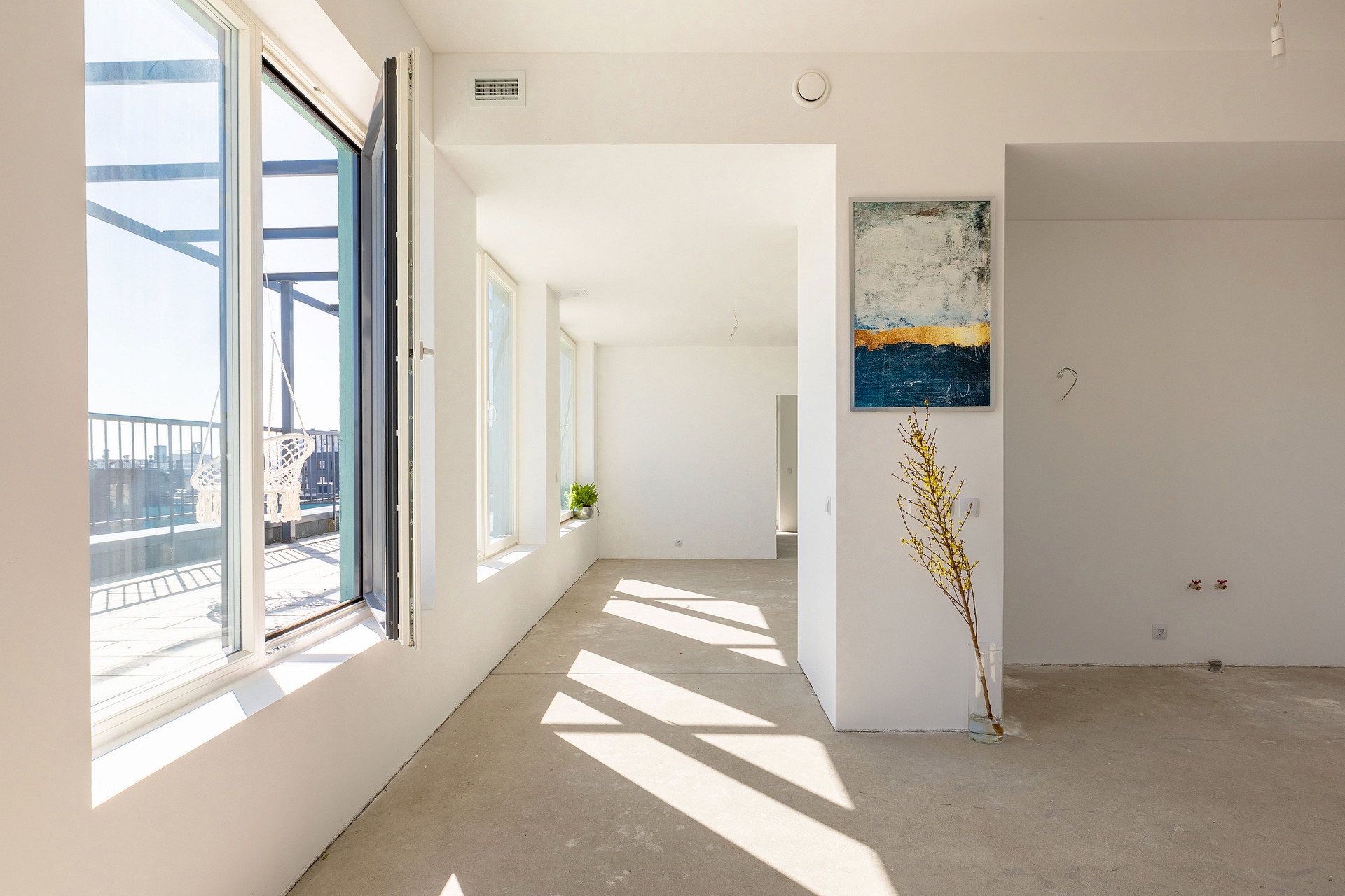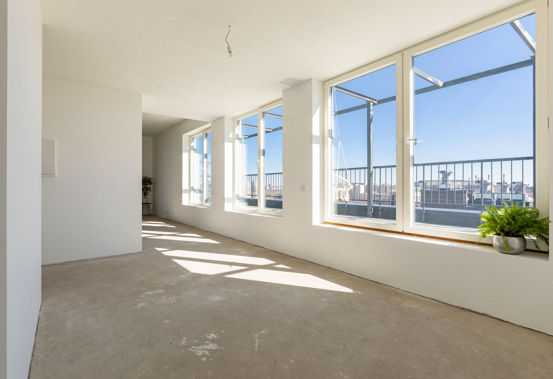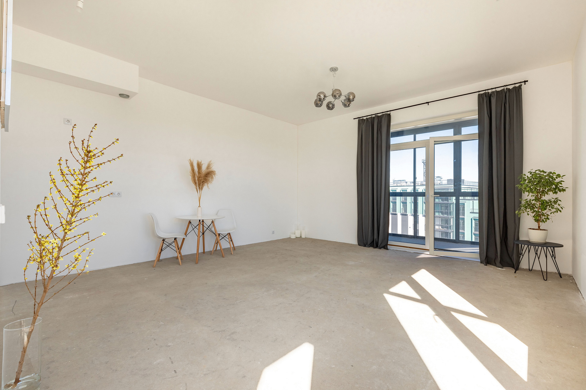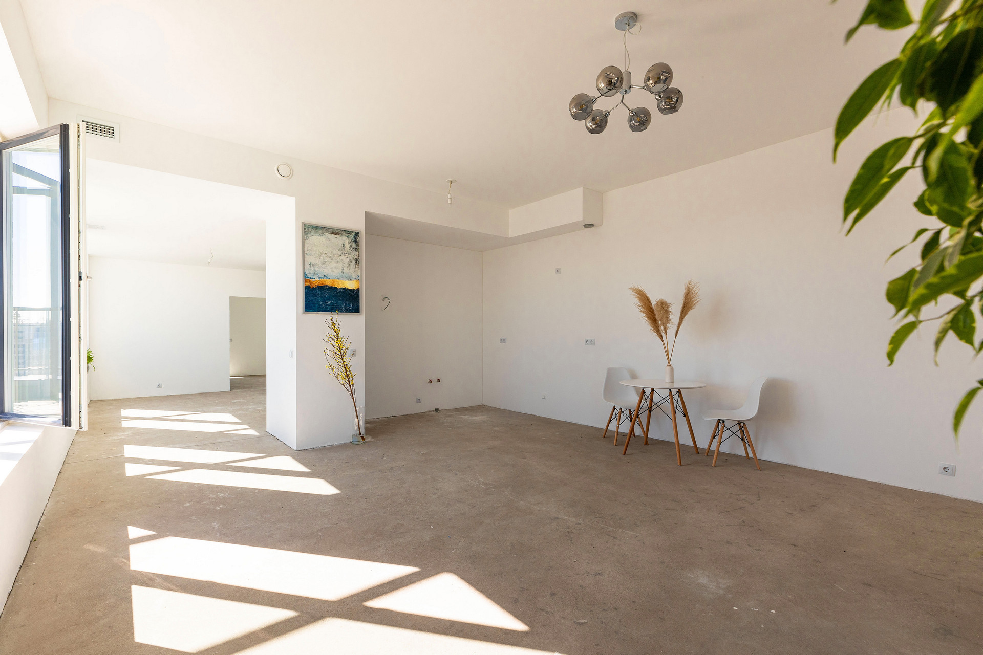 Предчистовая отделка whitebox, высокие потолки 3 метра, система вентиляции с рекуперацией воздуха.