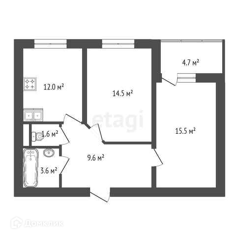 Общая площадь 59.3 м2