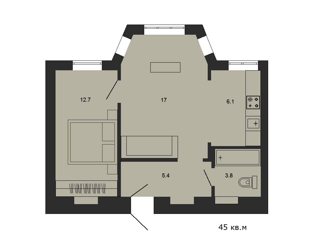 Общая площадь 41.9 м2