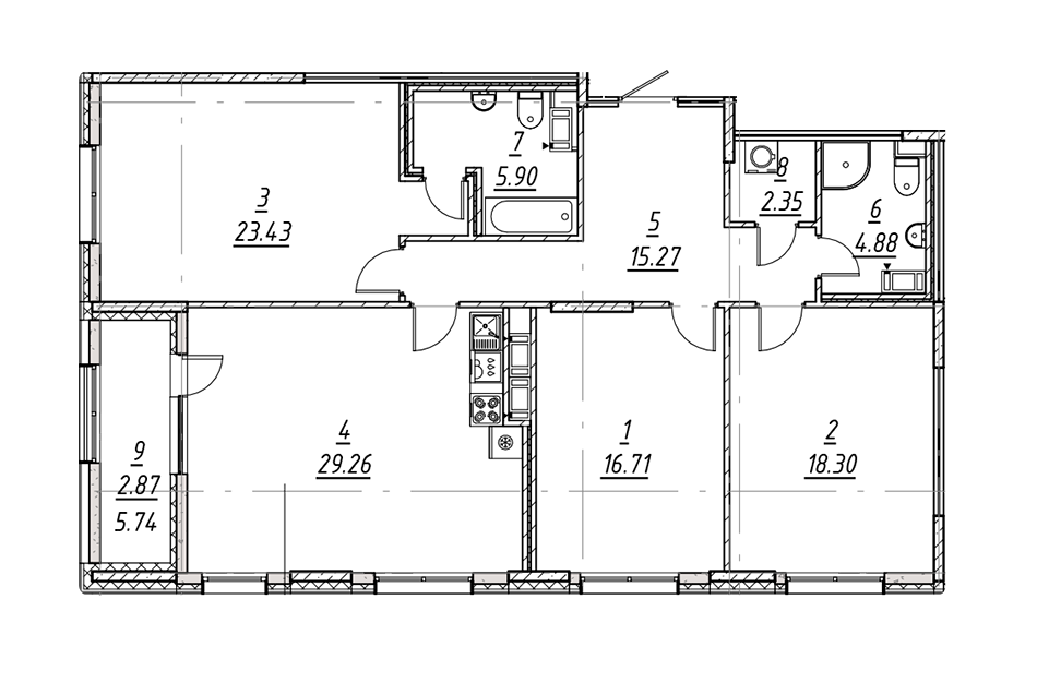 Общая площадь 118.97 м2