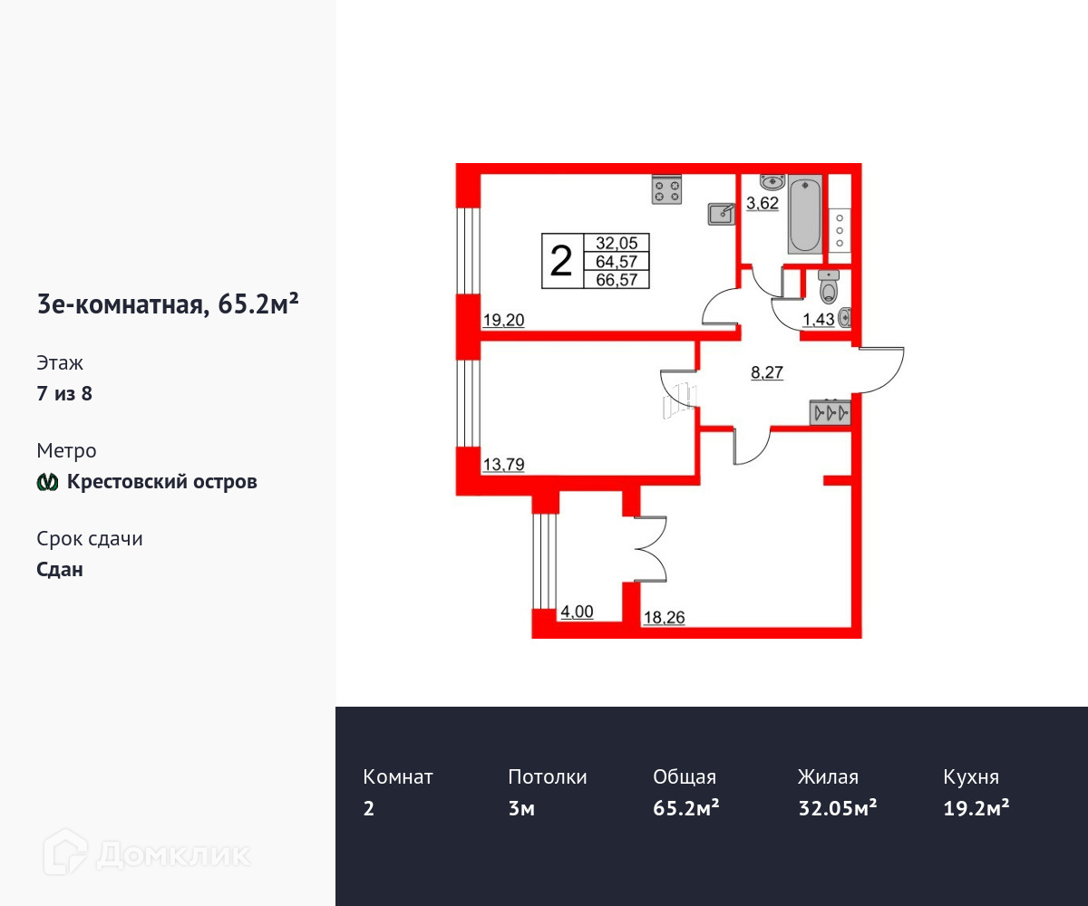 Общая площадь 65.2 м2