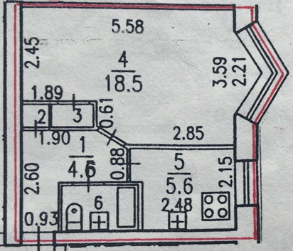 Жилая площадь 18.5 м2