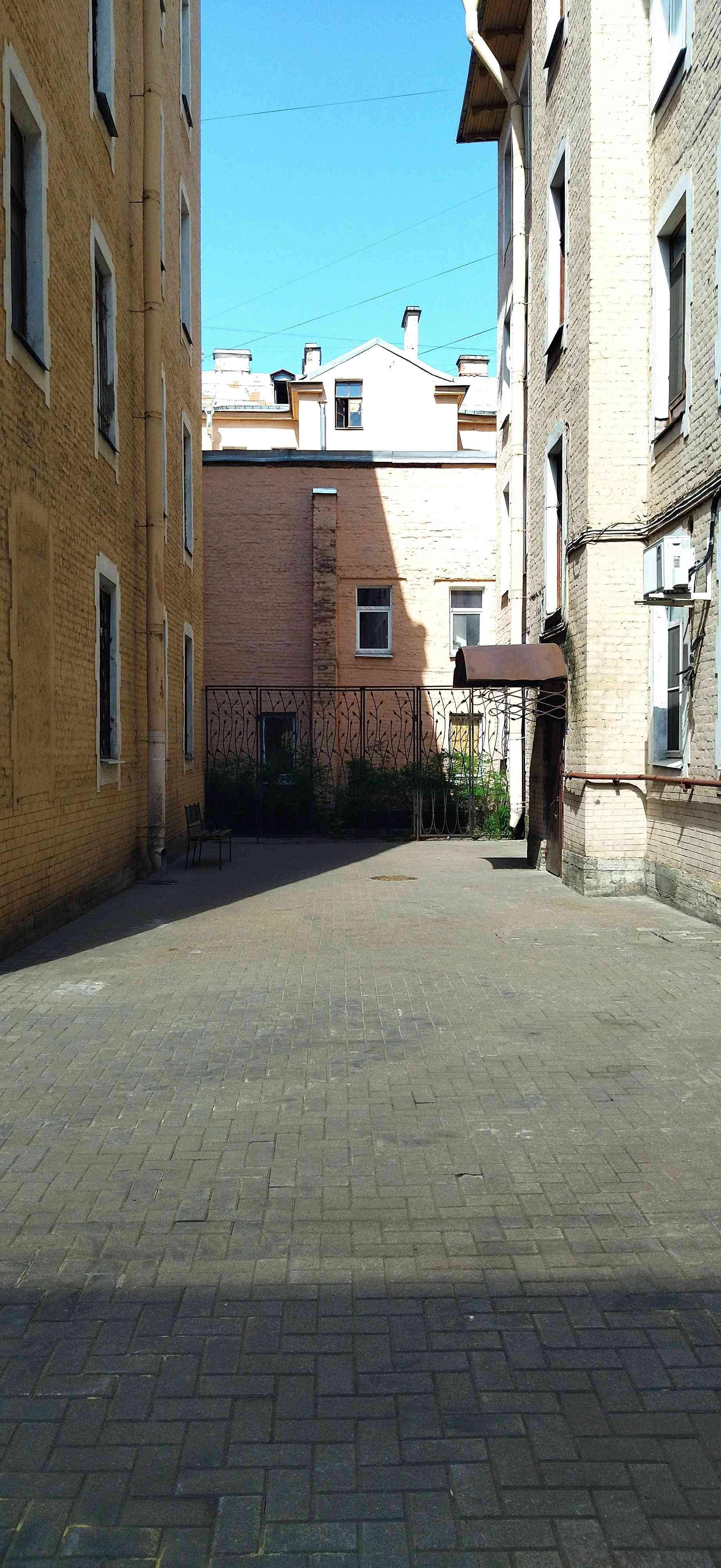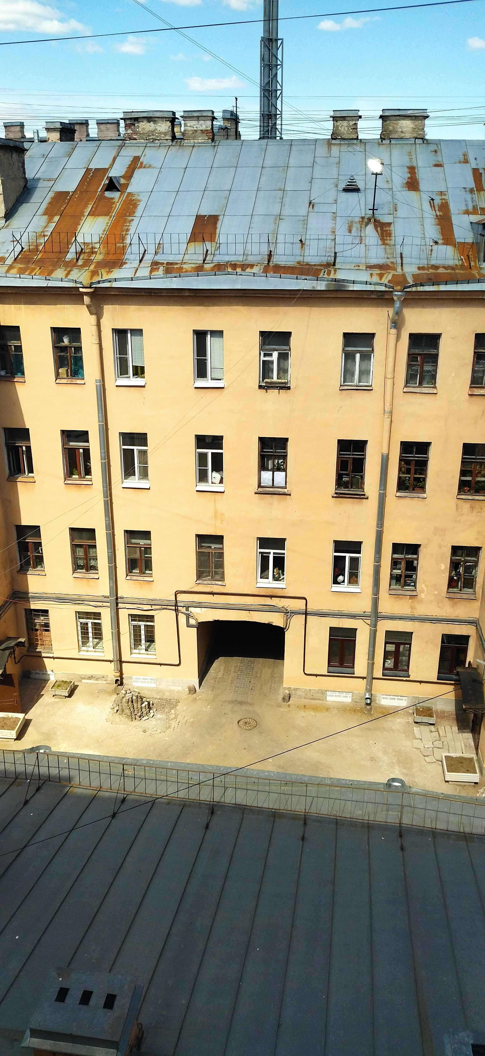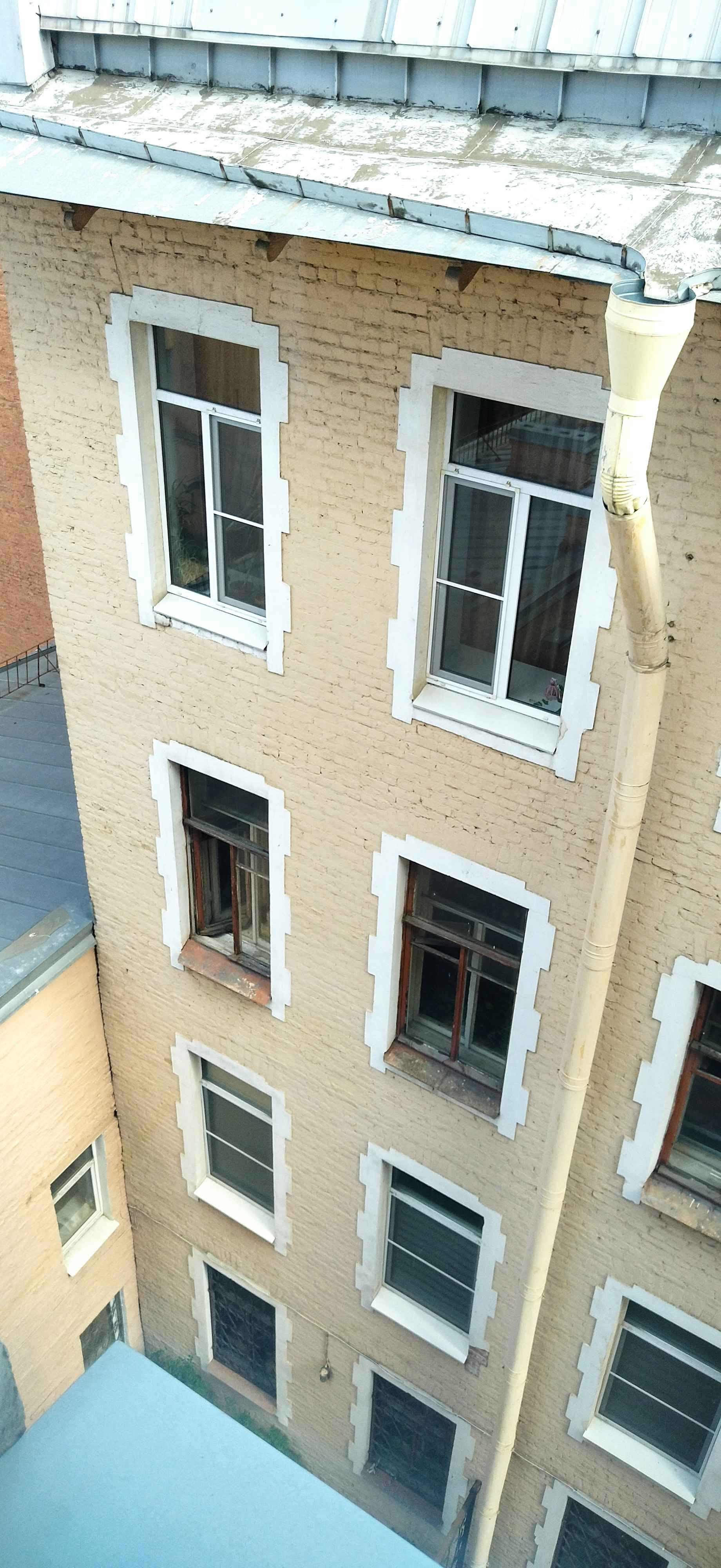 Окна выходят на две стороны, обе во двор.