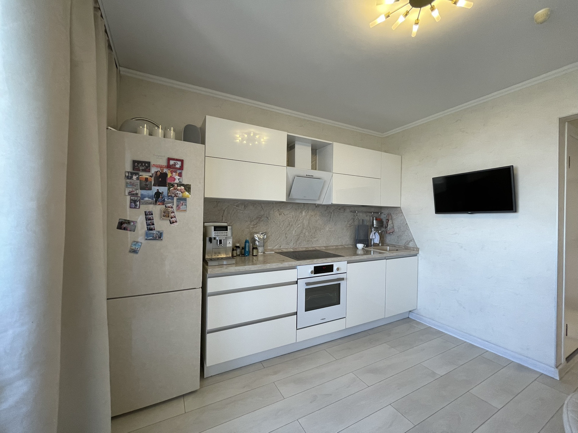 Просторная кухня , утеплённая лоджия. Коридор с большим встроенным шкафом.