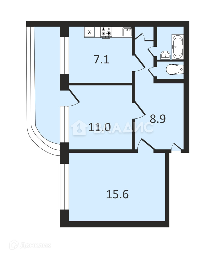 Площадь кухни 7.1 м2