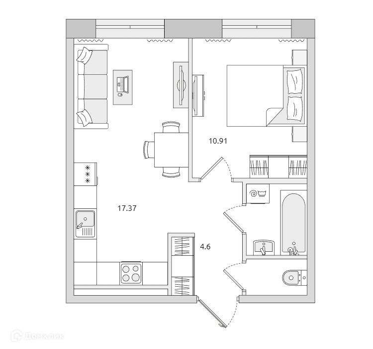 Жилая площадь 10.9 м2