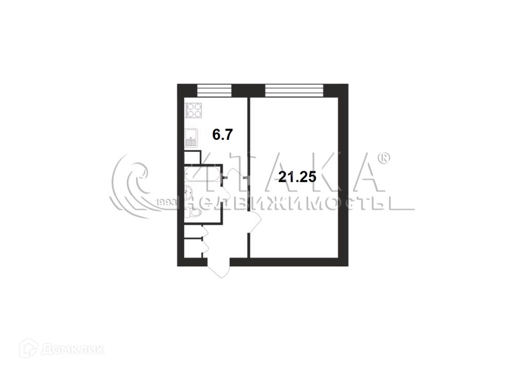 Жилая площадь 21.25 м2
