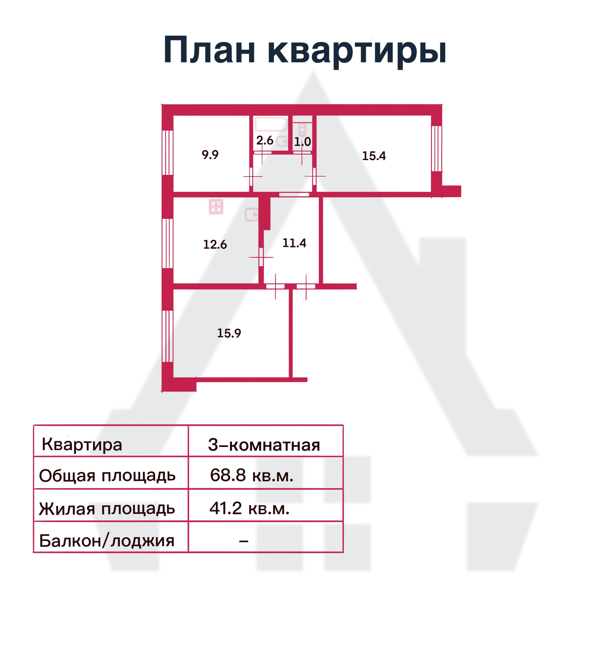 Общая площадь 68.8 м2