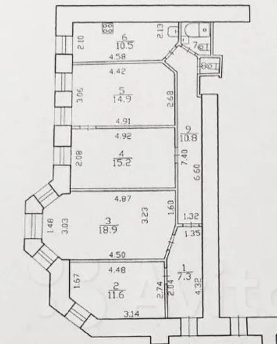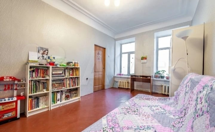 Большая, светлая 4-комн. квартира удобной планировки на 6-м этаже 7-ми этажного кирпичного дома 1910 года постройки(старый фонд), перекрытия железо-бетонные. Высота потолков 2.88