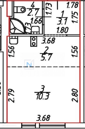 Общая площадь 21.8 м2