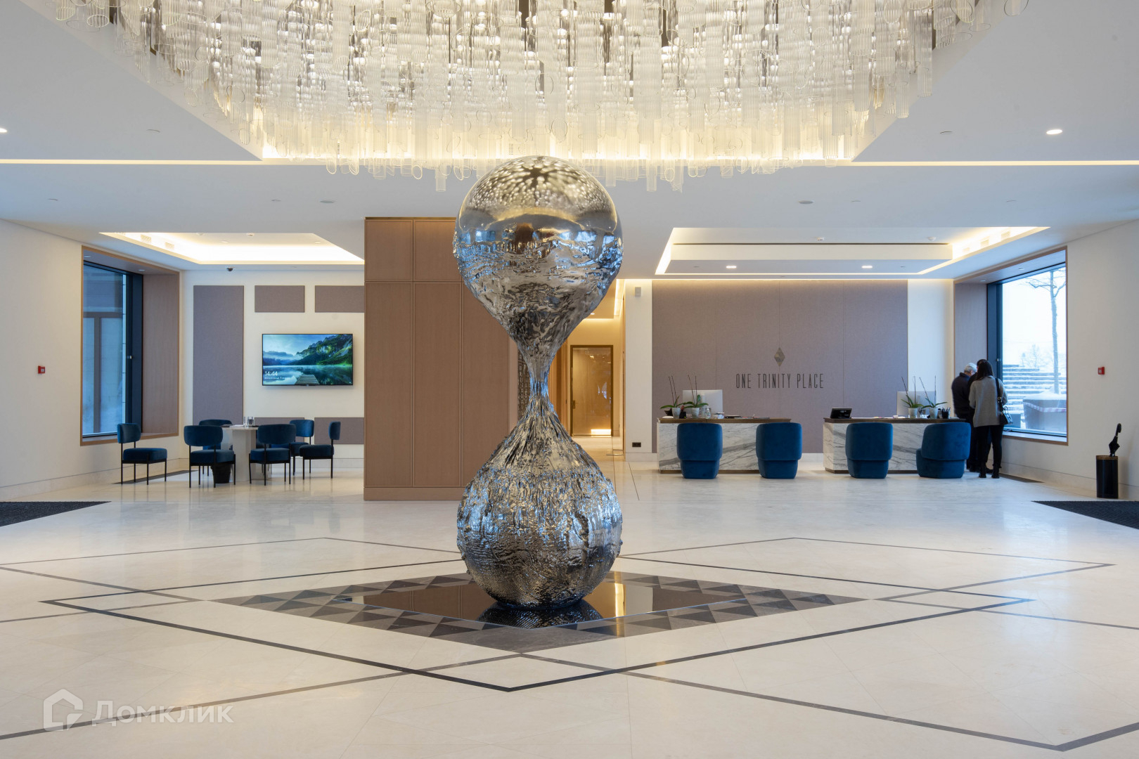 В One Trinity Place собственная сеть инфраструктуры. В центральном вестибюле размещен ресепшен, зона для встреч и отдыха с мягкой мебелью и камином, игровая комната, спортзал, библиотека.