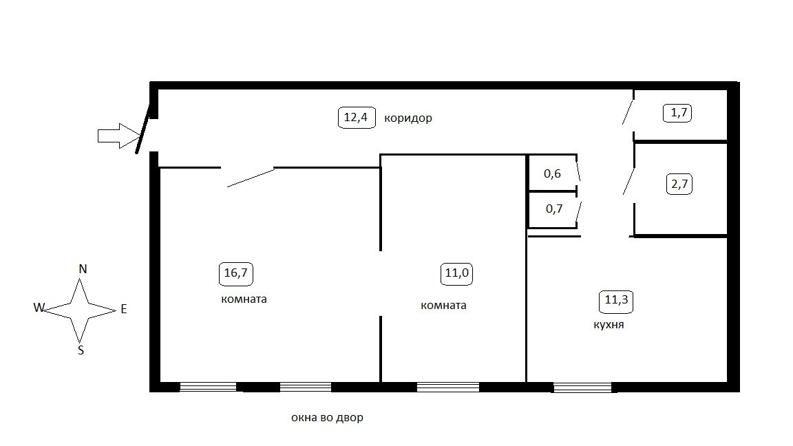 Расположена на 2м этаже – окна во двор