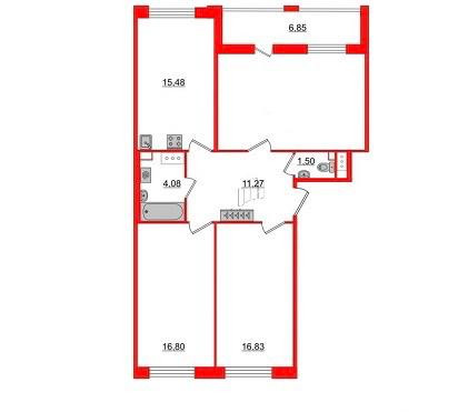 3-комнатная квартира, 85.7 м2, этаж 11 / 12, на продажу в Санкт-Петербурге, Манчестерская улица, 3